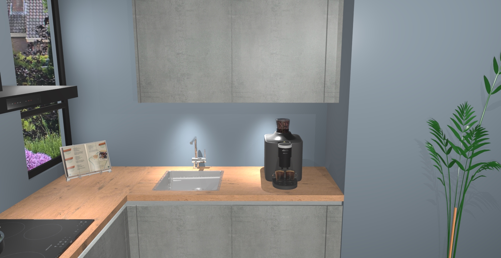 - De spoelbak is nog niet in gevreesd. Dit dient tijdens het werk gedaan te worden
