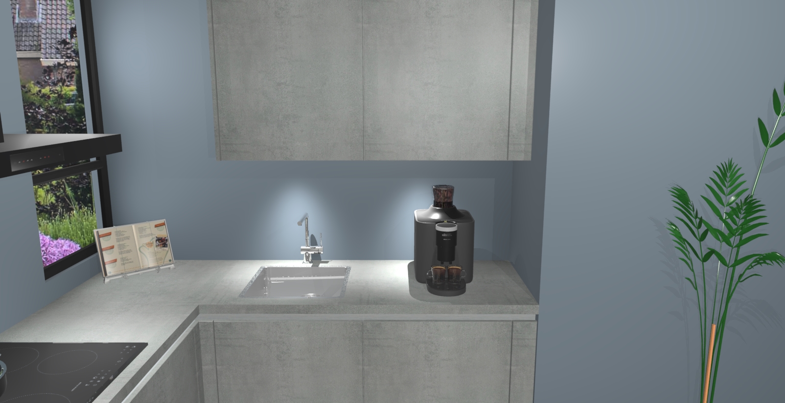 - De spoelbak is nog niet in gevreesd. Dit dient tijdens het werk gedaan te worden
