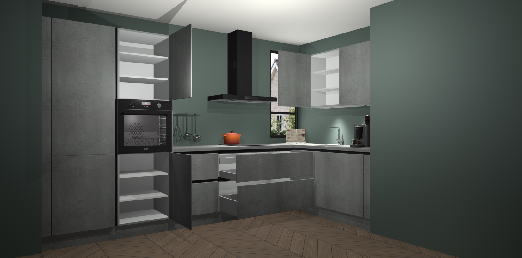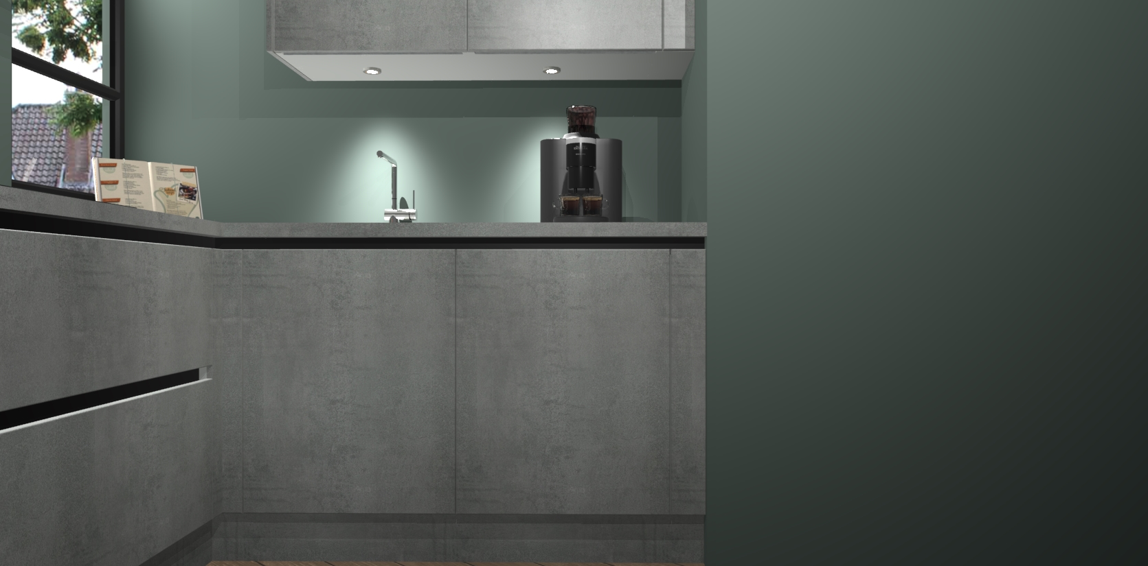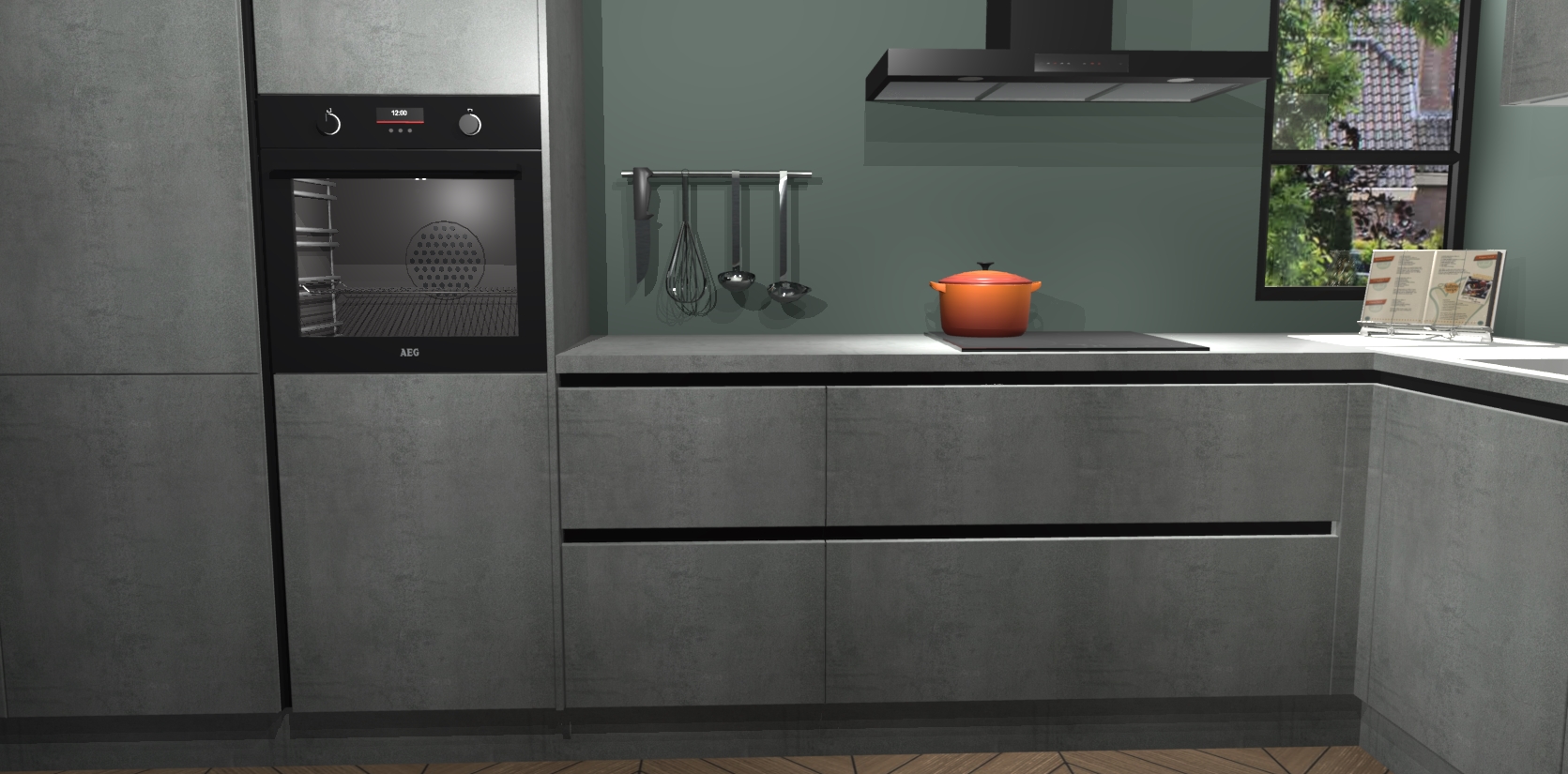 Welkom in uw nieuwe moderne keuken! Laat ons u voorstellen aan de Beton Parelgrijs greeploze keuken Vlaanderen.Deze prachtige hoekkeuken straalt exclusiviteit en luxe uit als geen ander. Het strakke design, de tijdloze kleuren en het greeploze model maken van deze keuken een moderne klassieker. En met voldoende opbergruimte heeft deze keuken echt voor ieder wat wils.