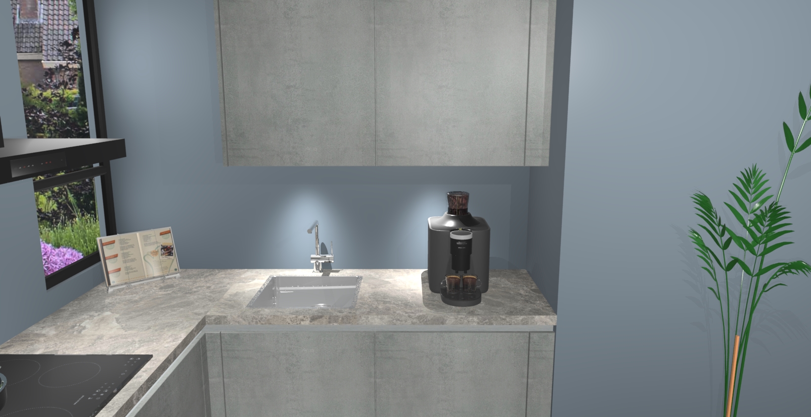 - De spoelbak is nog niet in gevreesd. Dit dient tijdens het werk gedaan te worden