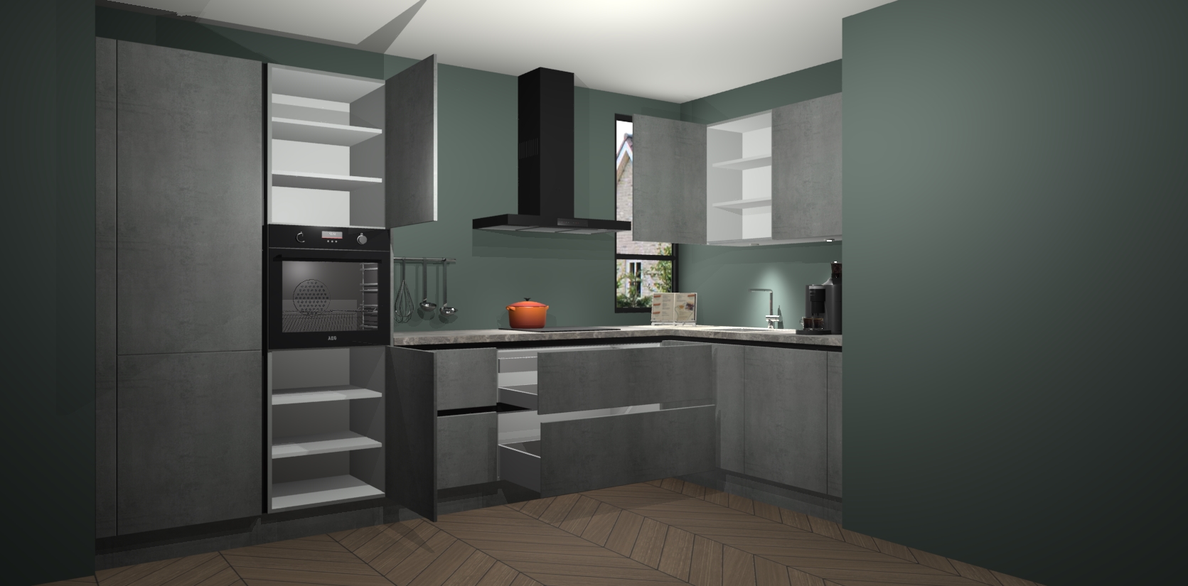 Welkom in uw nieuwe moderne keuken! Laat ons u voorstellen aan de Beton Parelgrijs greeploze keuken Vlaanderen.Deze prachtige hoekkeuken straalt exclusiviteit en luxe uit als geen ander. Het strakke design, de tijdloze kleuren en het greeploze model maken van deze keuken een moderne klassieker. En met voldoende opbergruimte heeft deze keuken echt voor ieder wat wils.