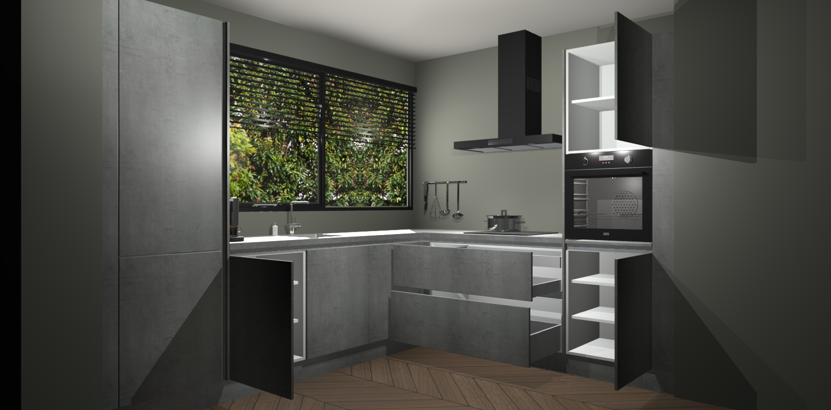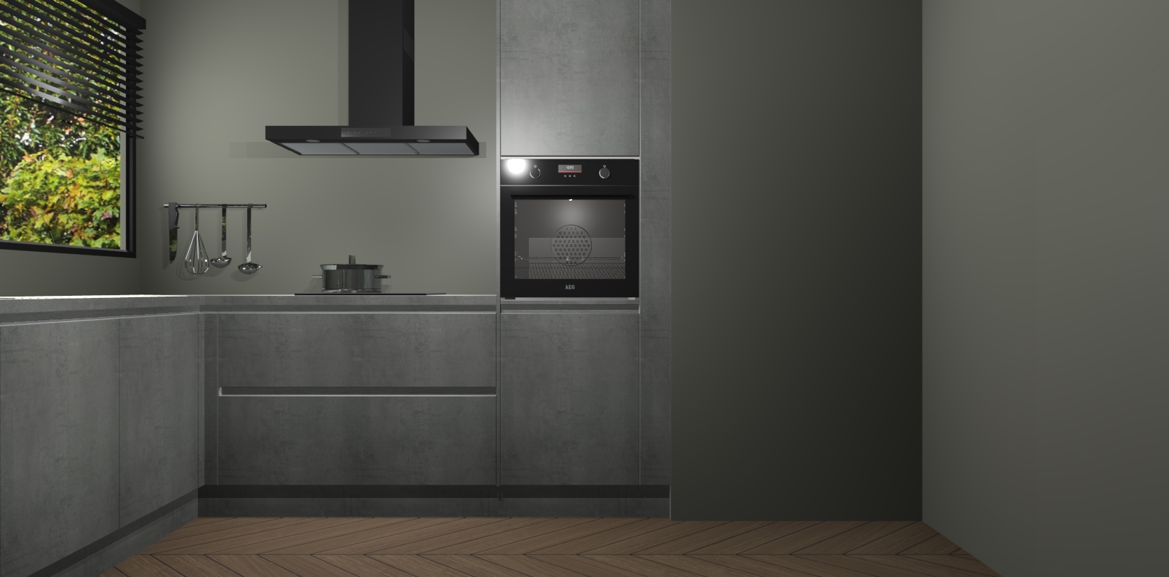 Met een modern, tijdloos design en ruime opslagruimte, zult u zich in no-time thuis voelen in uw nieuwe keuken. Uw leven wordt eenvoudiger met de soft-close deuren die voor het ultieme stille comfort zorgen - geen geluid dat u stoort terwijl u kookt. Ook is de keuken voorzien van 5 ingebouwde apparaten: een oven, inductie kookplaat, afzuigkap, vaatwasser en koelkast. Deze kunnen gemakkelijk na bestelling worden bijgewerkt naar AEG - waardoor uw luxe ervaring compleet is.