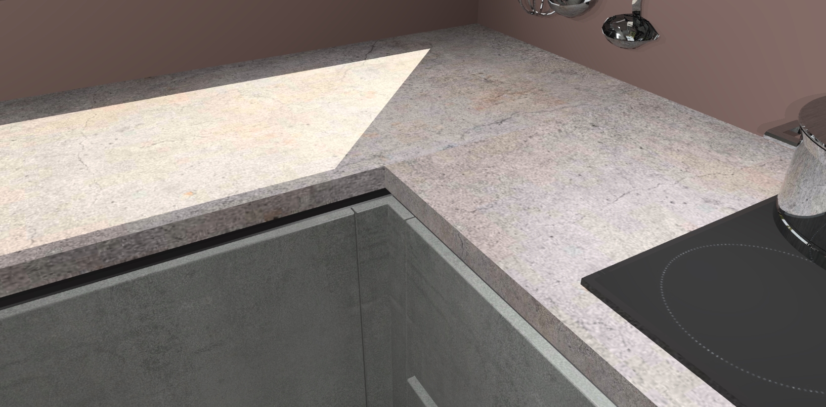 - Bij een hoekwerkblad zijn de hoeken in gevreesd en op maat gemaakt