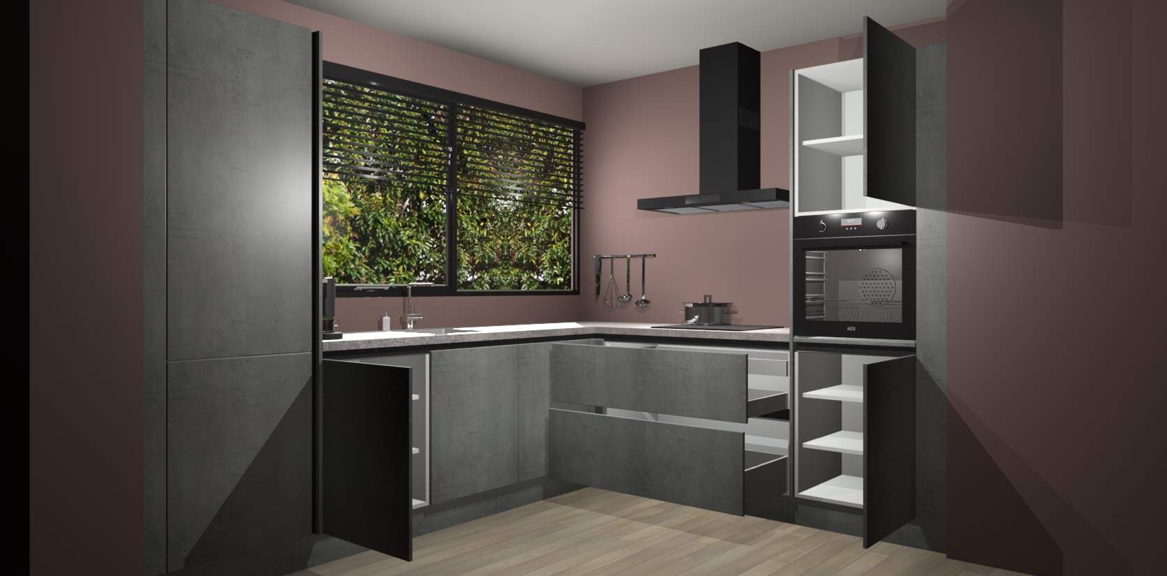Met een modern, tijdloos design en ruime opslagruimte, zult u zich in no-time thuis voelen in uw nieuwe keuken. Uw leven wordt eenvoudiger met de soft-close deuren die voor het ultieme stille comfort zorgen - geen geluid dat u stoort terwijl u kookt. Ook is de keuken voorzien van 5 ingebouwde apparaten: een oven, inductie kookplaat, afzuigkap, vaatwasser en koelkast. Deze kunnen gemakkelijk na bestelling worden bijgewerkt naar AEG - waardoor uw luxe ervaring compleet is.