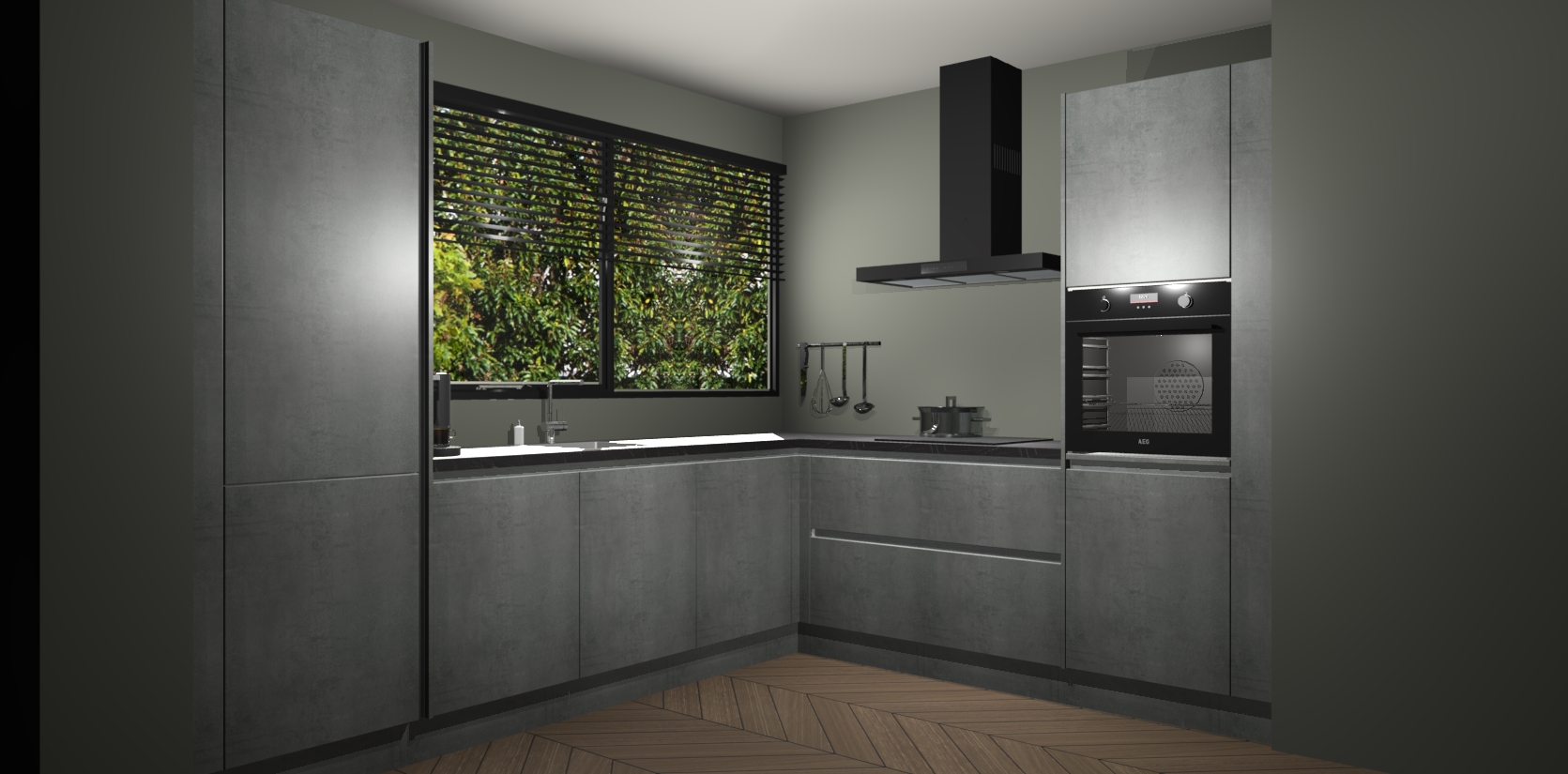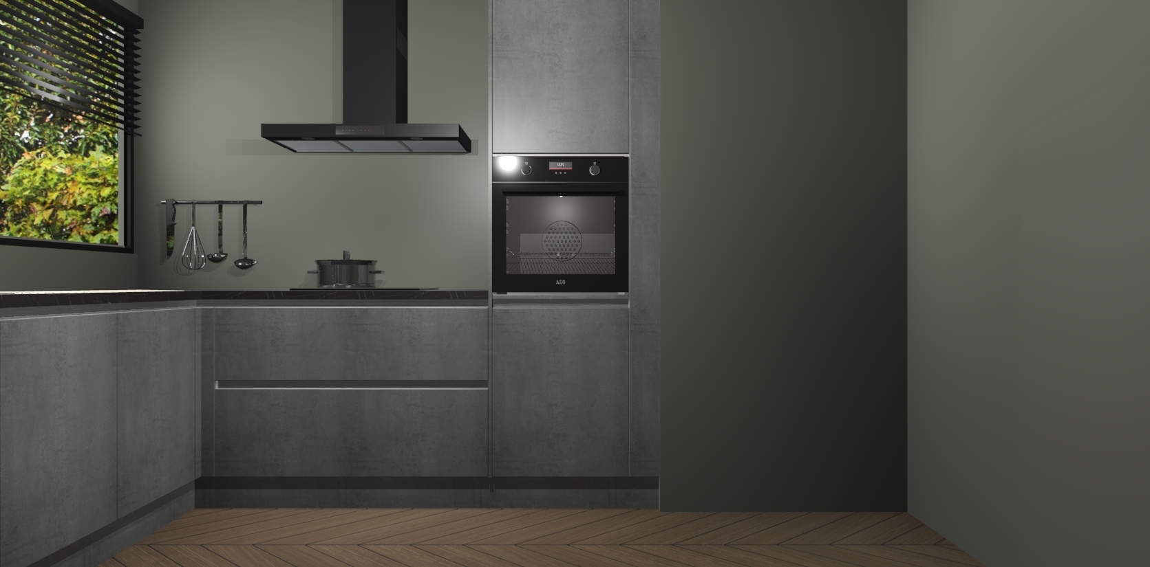 Met een modern, tijdloos design en ruime opslagruimte, zult u zich in no-time thuis voelen in uw nieuwe keuken. Uw leven wordt eenvoudiger met de soft-close deuren die voor het ultieme stille comfort zorgen - geen geluid dat u stoort terwijl u kookt. Ook is de keuken voorzien van 5 ingebouwde apparaten: een oven, inductie kookplaat, afzuigkap, vaatwasser en koelkast. Deze kunnen gemakkelijk na bestelling worden bijgewerkt naar AEG - waardoor uw luxe ervaring compleet is.