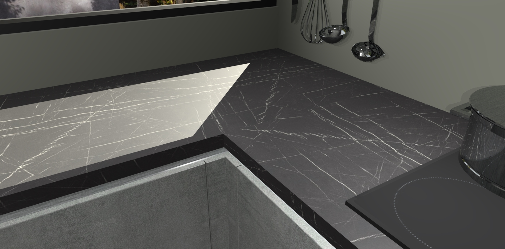 - Bij een hoekwerkblad zijn de hoeken in gevreesd en op maat gemaakt