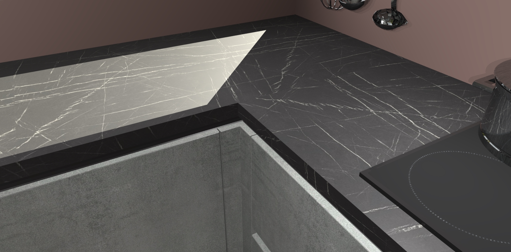 - Bij een hoekwerkblad zijn de hoeken in gevreesd en op maat gemaakt