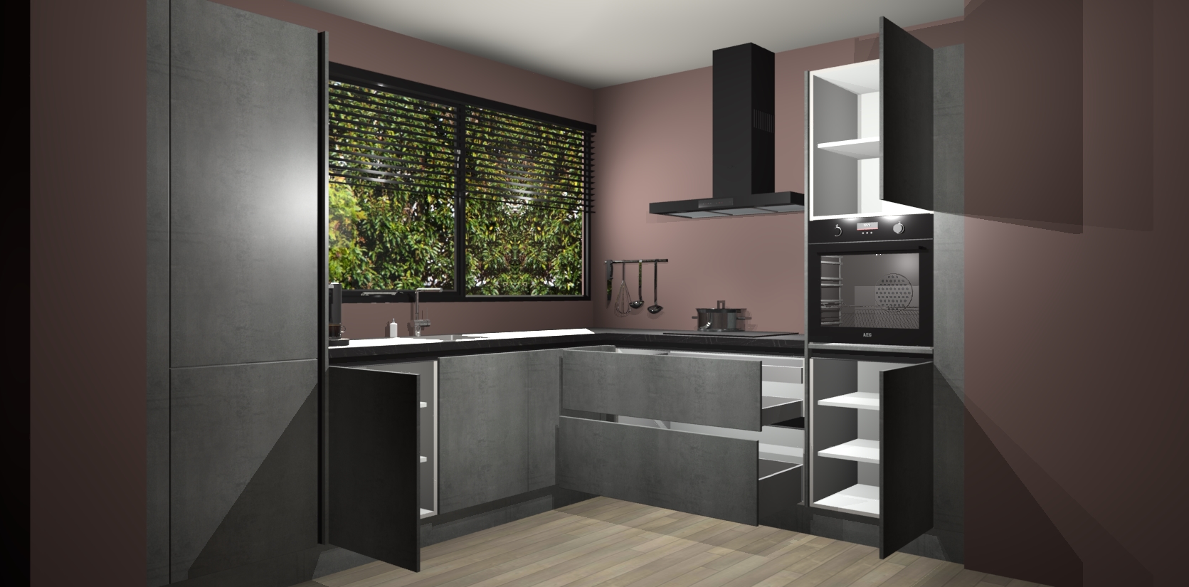 Met een modern, tijdloos design en ruime opslagruimte, zult u zich in no-time thuis voelen in uw nieuwe keuken. Uw leven wordt eenvoudiger met de soft-close deuren die voor het ultieme stille comfort zorgen - geen geluid dat u stoort terwijl u kookt. Ook is de keuken voorzien van 5 ingebouwde apparaten: een oven, inductie kookplaat, afzuigkap, vaatwasser en koelkast. Deze kunnen gemakkelijk na bestelling worden bijgewerkt naar AEG - waardoor uw luxe ervaring compleet is.