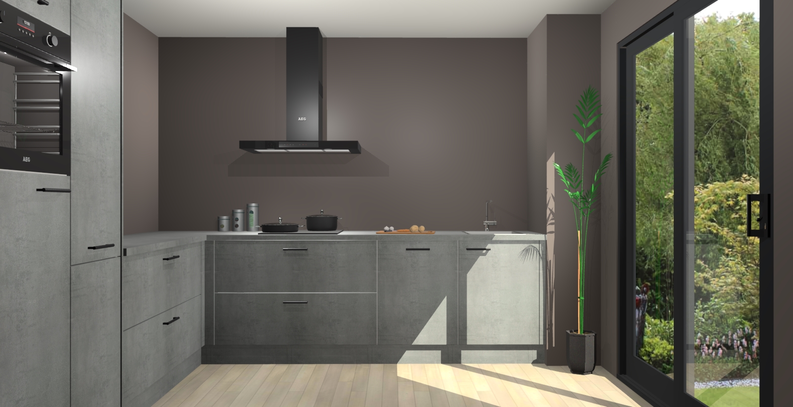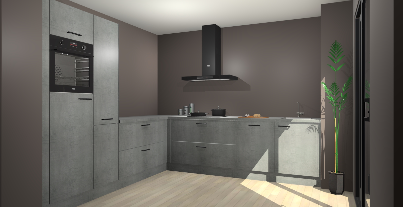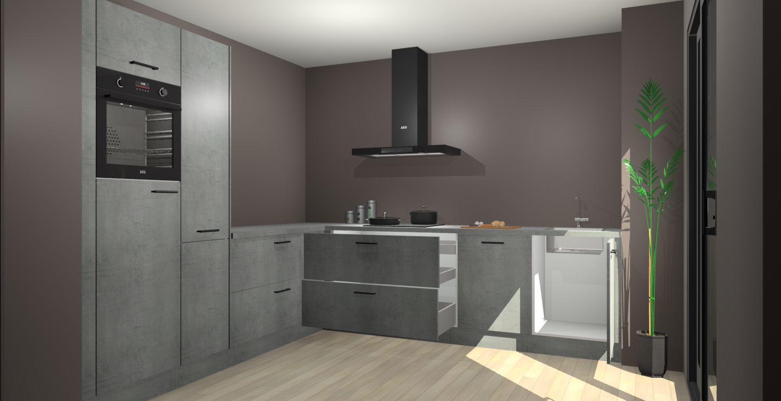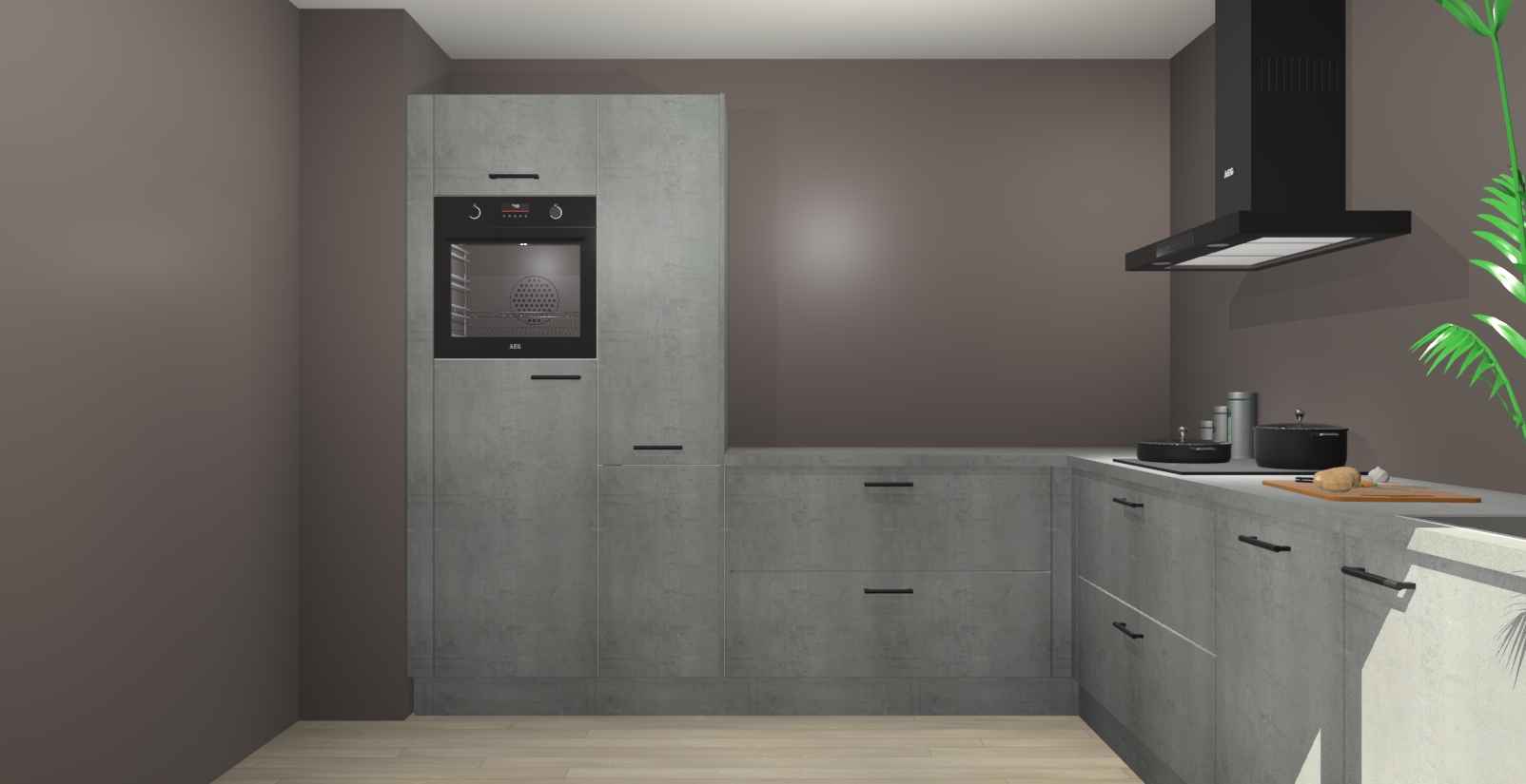 Laat u verrassen door de nieuwste en meest innovatieve keuken van dit moment: De Beton Parelgrijs keuken Antibes. Deze chique keuken straalt een stijlvolle sfeer uit die zeker bewondering zal oogsten bij uw gasten. Als u op zoek bent naar voldoende opbergruimte voor al uw keukengadgets en -gerei, dan is dit de perfecte oplossing. Met ingebouwde apparatuur zoals een oven, inductiekookplaat, afzuigkap, vaatwasser en koelkast! U krijgt niet alleen veel opbergruimte, maar ook een betrouwbaar soft close-deursysteem dat ervoor zorgt dat er nooit meer kastdeuren dichtslaan!