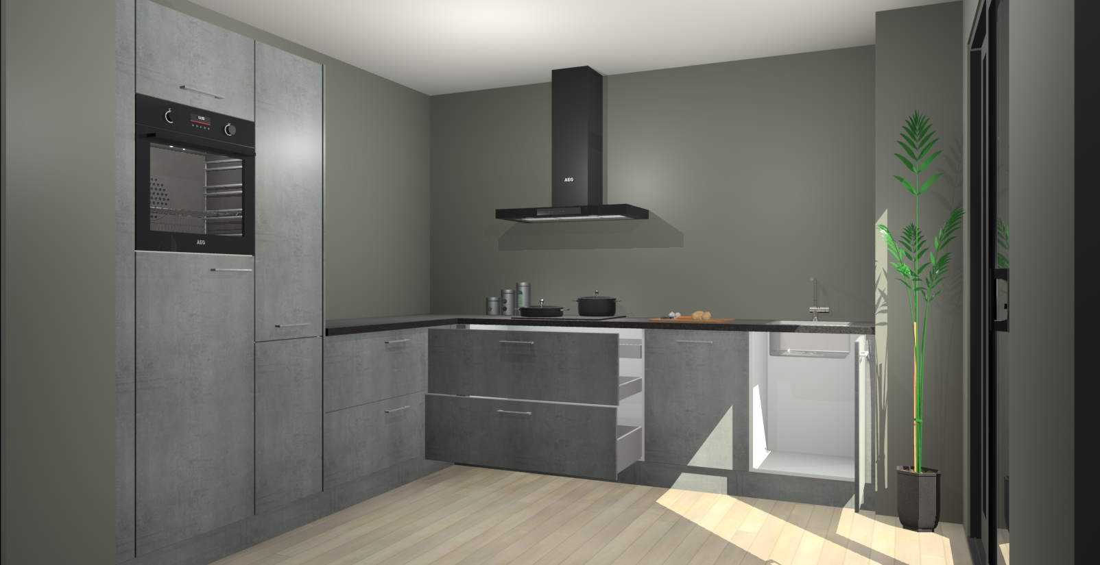 Laat u verrassen door de nieuwste en meest innovatieve keuken van dit moment: De Beton Parelgrijs keuken Antibes. Deze chique keuken straalt een stijlvolle sfeer uit die zeker bewondering zal oogsten bij uw gasten. Als u op zoek bent naar voldoende opbergruimte voor al uw keukengadgets en -gerei, dan is dit de perfecte oplossing. Met ingebouwde apparatuur zoals een oven, inductiekookplaat, afzuigkap, vaatwasser en koelkast! U krijgt niet alleen veel opbergruimte, maar ook een betrouwbaar soft close-deursysteem dat ervoor zorgt dat er nooit meer kastdeuren dichtslaan!