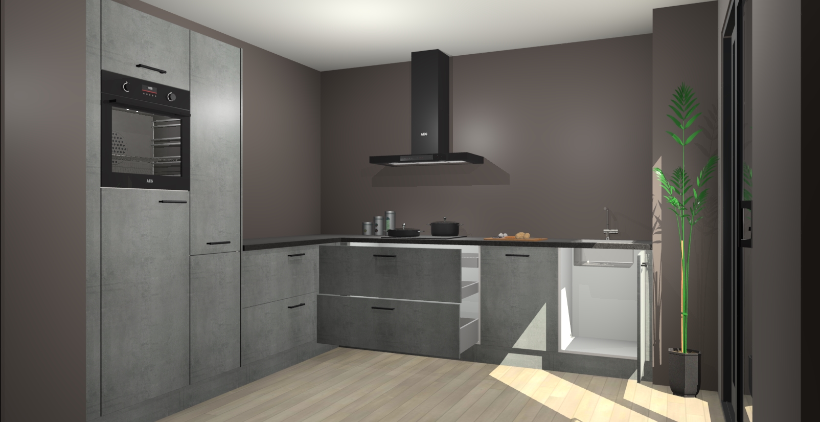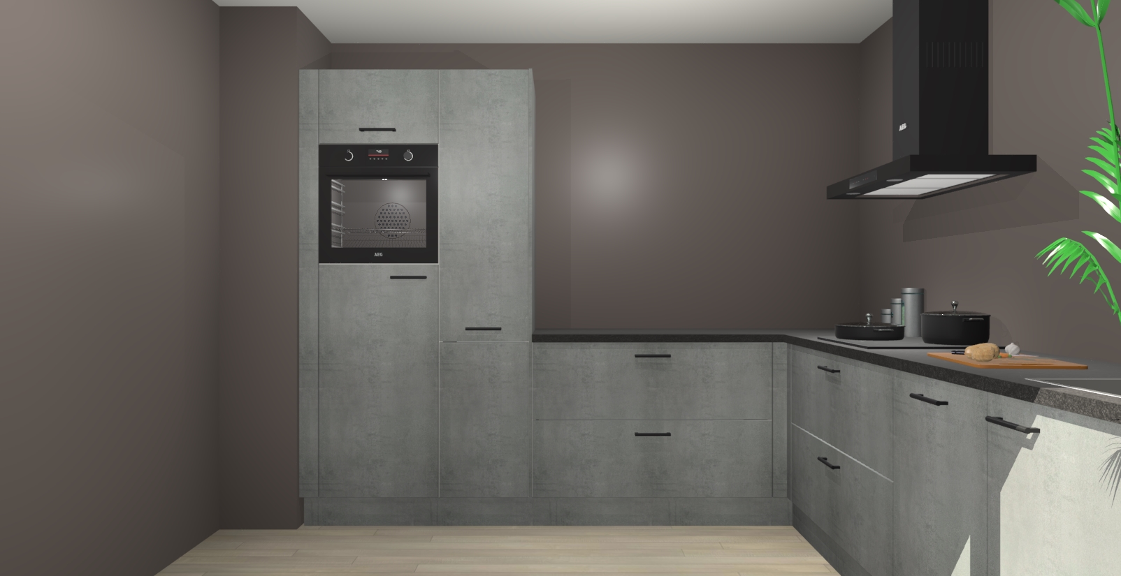 Laat u verrassen door de nieuwste en meest innovatieve keuken van dit moment: De Beton Parelgrijs keuken Antibes. Deze chique keuken straalt een stijlvolle sfeer uit die zeker bewondering zal oogsten bij uw gasten. Als u op zoek bent naar voldoende opbergruimte voor al uw keukengadgets en -gerei, dan is dit de perfecte oplossing. Met ingebouwde apparatuur zoals een oven, inductiekookplaat, afzuigkap, vaatwasser en koelkast! U krijgt niet alleen veel opbergruimte, maar ook een betrouwbaar soft close-deursysteem dat ervoor zorgt dat er nooit meer kastdeuren dichtslaan!