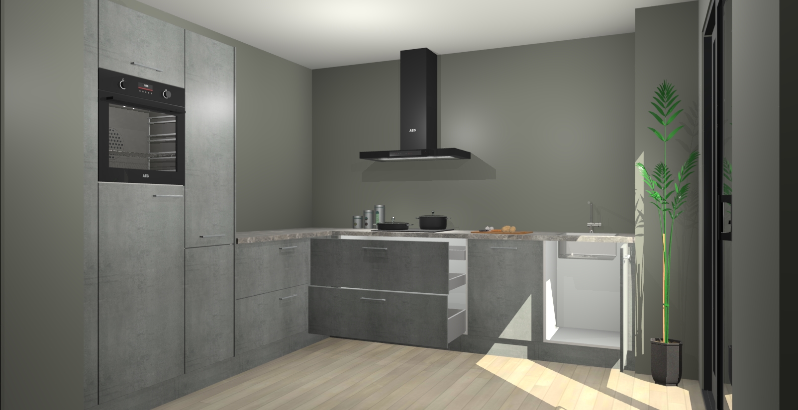 Laat u verrassen door de nieuwste en meest innovatieve keuken van dit moment: De Beton Parelgrijs keuken Antibes. Deze chique keuken straalt een stijlvolle sfeer uit die zeker bewondering zal oogsten bij uw gasten. Als u op zoek bent naar voldoende opbergruimte voor al uw keukengadgets en -gerei, dan is dit de perfecte oplossing. Met ingebouwde apparatuur zoals een oven, inductiekookplaat, afzuigkap, vaatwasser en koelkast! U krijgt niet alleen veel opbergruimte, maar ook een betrouwbaar soft close-deursysteem dat ervoor zorgt dat er nooit meer kastdeuren dichtslaan!