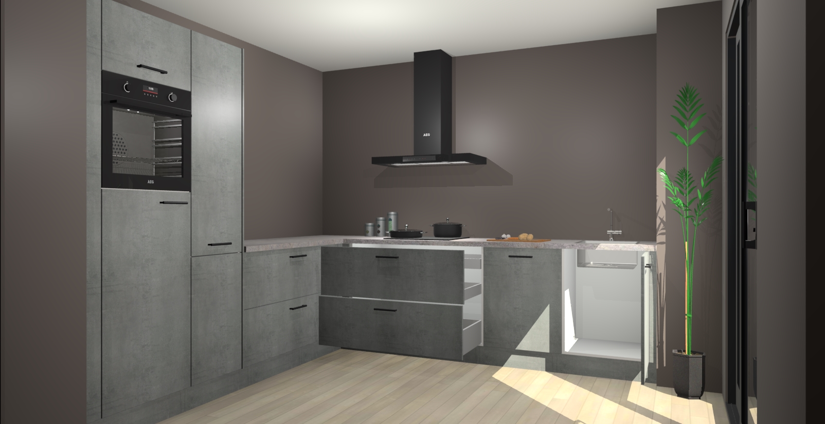 Laat u verrassen door de nieuwste en meest innovatieve keuken van dit moment: De Beton Parelgrijs keuken Antibes. Deze chique keuken straalt een stijlvolle sfeer uit die zeker bewondering zal oogsten bij uw gasten. Als u op zoek bent naar voldoende opbergruimte voor al uw keukengadgets en -gerei, dan is dit de perfecte oplossing. Met ingebouwde apparatuur zoals een oven, inductiekookplaat, afzuigkap, vaatwasser en koelkast! U krijgt niet alleen veel opbergruimte, maar ook een betrouwbaar soft close-deursysteem dat ervoor zorgt dat er nooit meer kastdeuren dichtslaan!