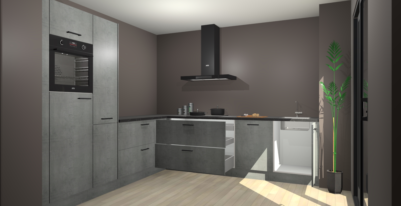 Laat u verrassen door de nieuwste en meest innovatieve keuken van dit moment: De Beton Parelgrijs keuken Antibes. Deze chique keuken straalt een stijlvolle sfeer uit die zeker bewondering zal oogsten bij uw gasten. Als u op zoek bent naar voldoende opbergruimte voor al uw keukengadgets en -gerei, dan is dit de perfecte oplossing. Met ingebouwde apparatuur zoals een oven, inductiekookplaat, afzuigkap, vaatwasser en koelkast! U krijgt niet alleen veel opbergruimte, maar ook een betrouwbaar soft close-deursysteem dat ervoor zorgt dat er nooit meer kastdeuren dichtslaan!