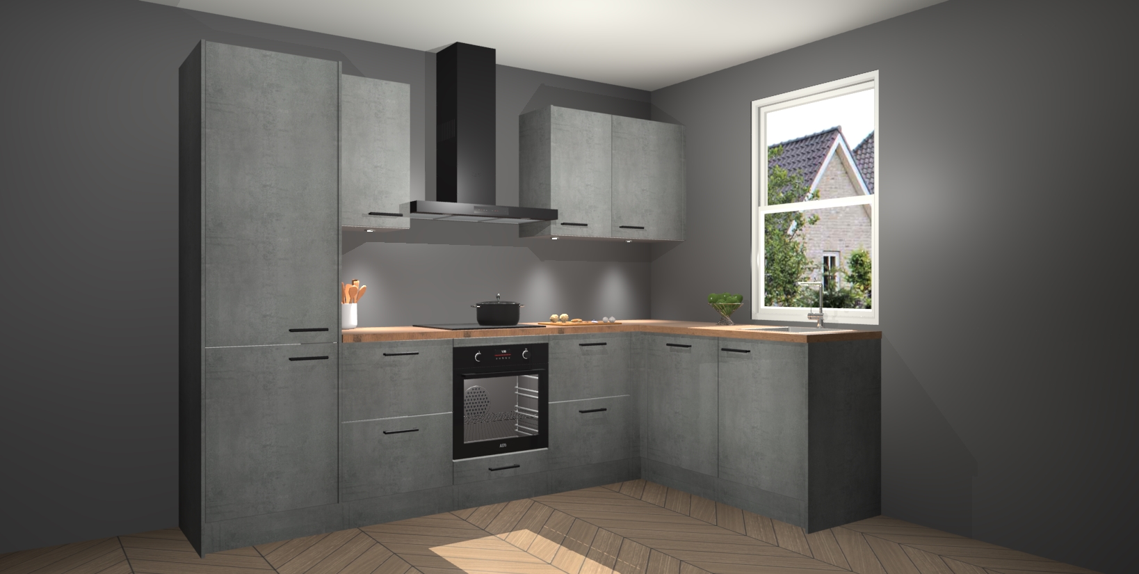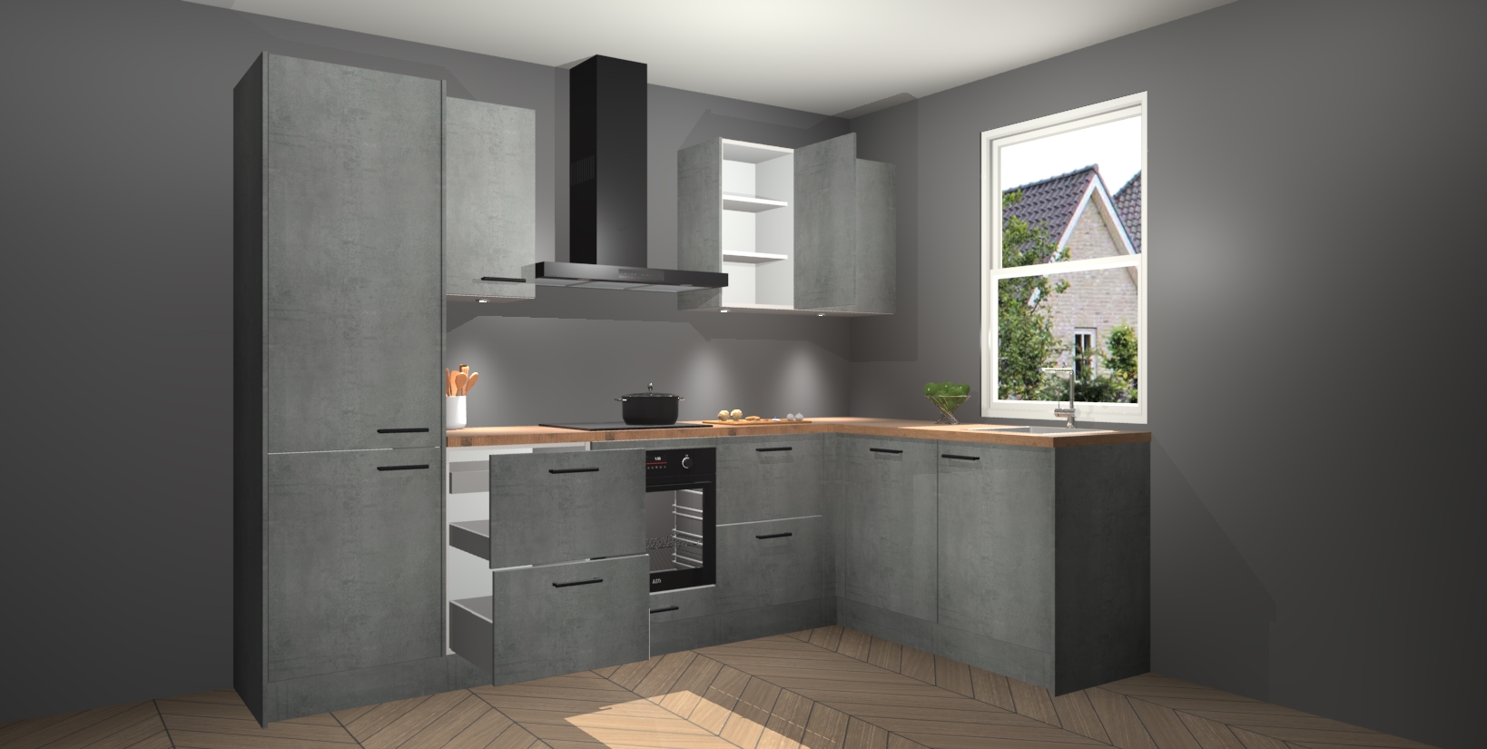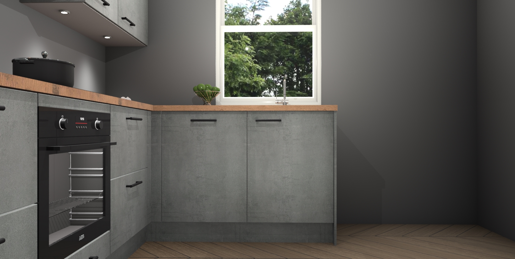 Maak kennis met de trendsettende en luxe Beton Parelgrijs keuken Bazel! Deze uitzonderlijke keuken van Duitse kwaliteit is stijlvol, modern en perfect om elk huis mee op te fleuren. De binnenkant van de kasten worden meegenomen in een bijpassende kleur om een samenhangende eigentijdse esthetiek te voltooien. U zult dol zijn op hoe uw pas gerenoveerde keuken eruitziet met de Beton Parelgrijs editie!