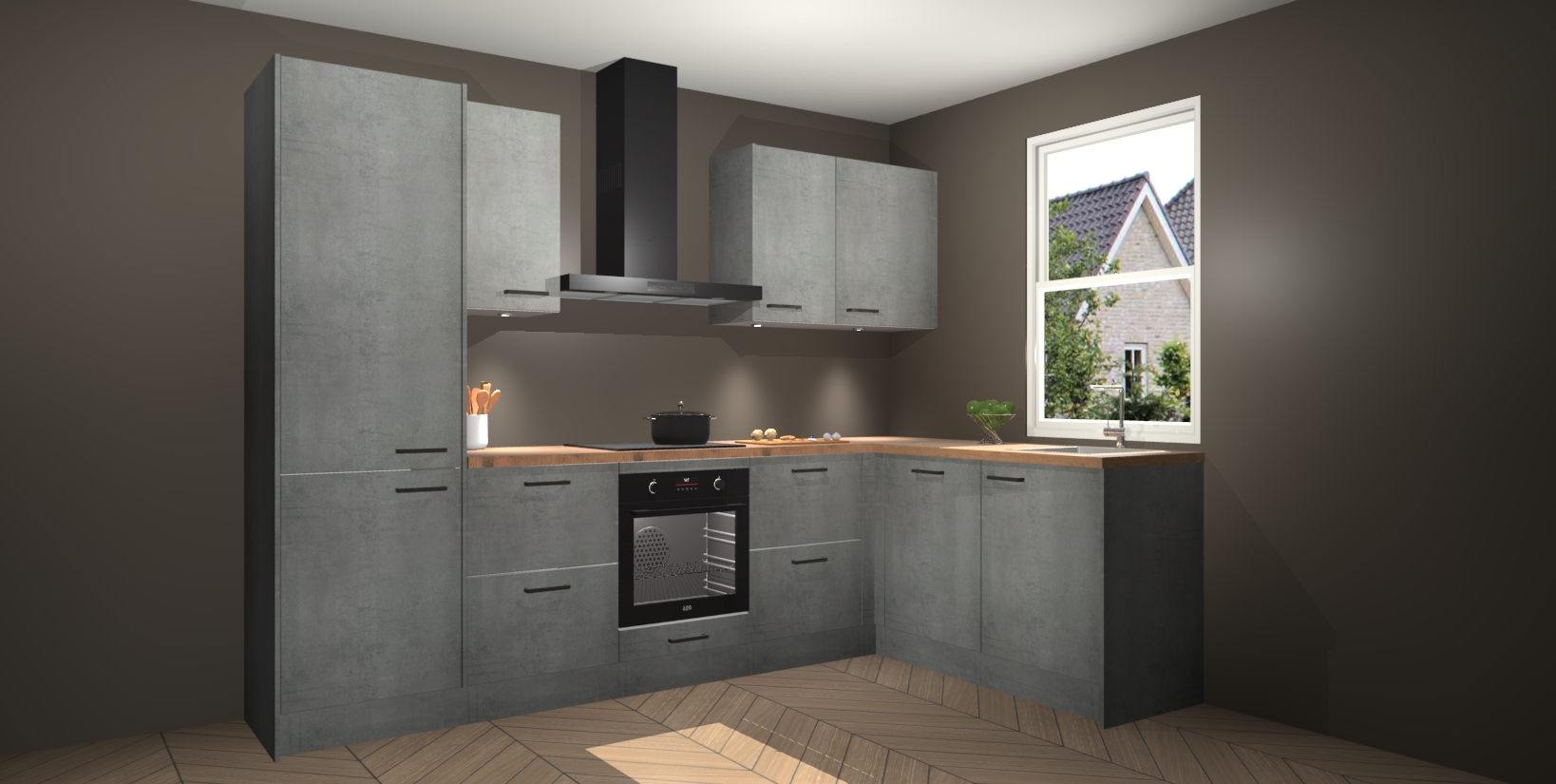 Maak kennis met de trendsettende en luxe Beton Parelgrijs keuken Bazel! Deze uitzonderlijke keuken van Duitse kwaliteit is stijlvol, modern en perfect om elk huis mee op te fleuren. De binnenkant van de kasten worden meegenomen in een bijpassende kleur om een samenhangende eigentijdse esthetiek te voltooien. U zult dol zijn op hoe uw pas gerenoveerde keuken eruitziet met de Beton Parelgrijs editie!