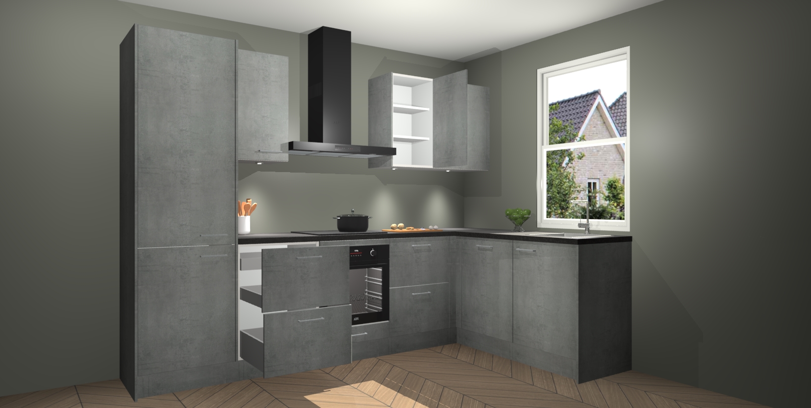 Maak kennis met de trendsettende en luxe Beton Parelgrijs keuken Bazel! Deze uitzonderlijke keuken van Duitse kwaliteit is stijlvol, modern en perfect om elk huis mee op te fleuren. De binnenkant van de kasten worden meegenomen in een bijpassende kleur om een samenhangende eigentijdse esthetiek te voltooien. U zult dol zijn op hoe uw pas gerenoveerde keuken eruitziet met de Beton Parelgrijs editie!