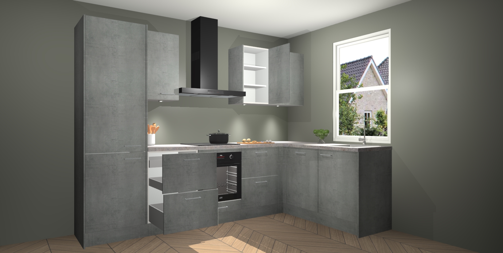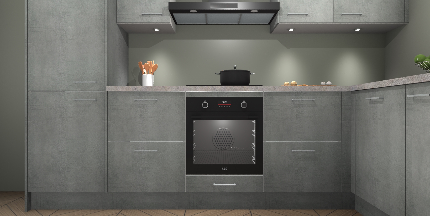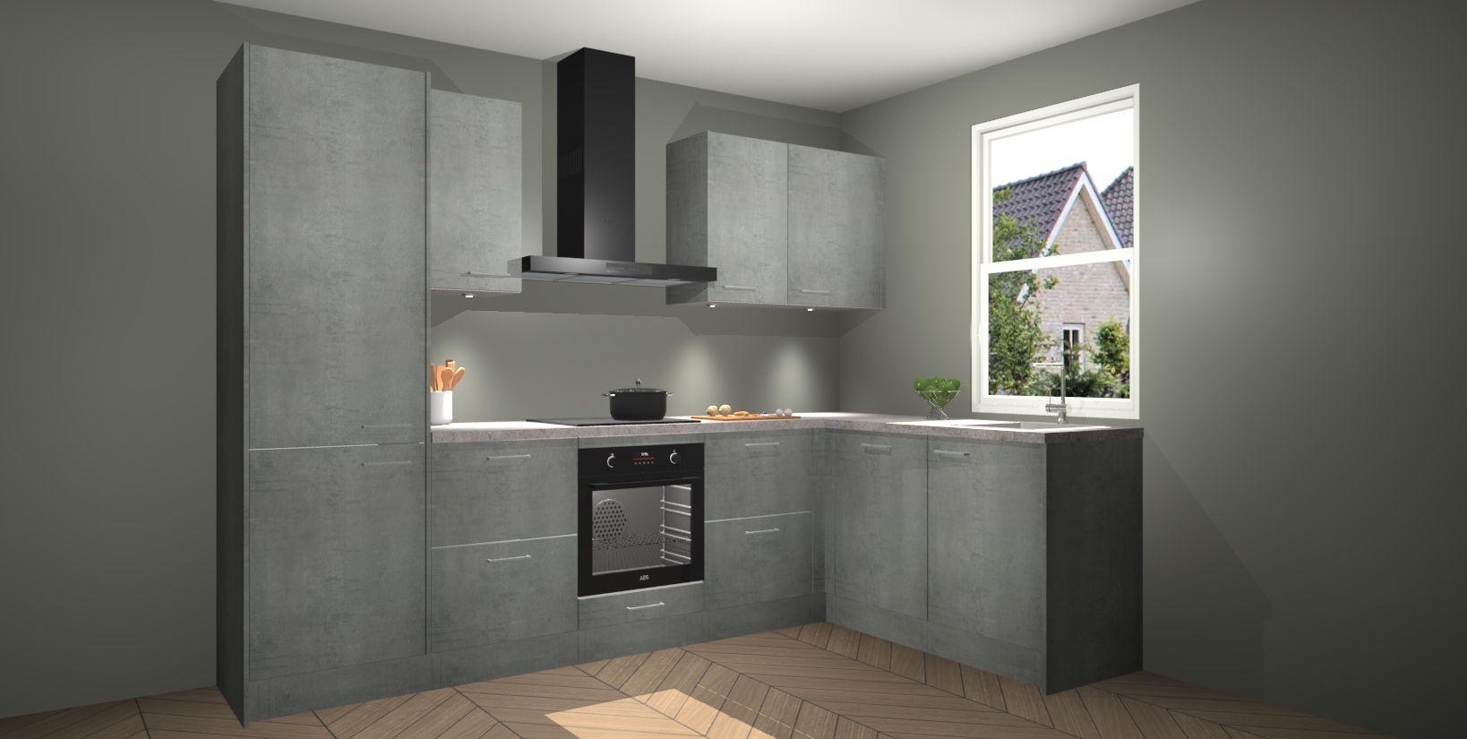 Maak kennis met de trendsettende en luxe Beton Parelgrijs keuken Bazel! Deze uitzonderlijke keuken van Duitse kwaliteit is stijlvol, modern en perfect om elk huis mee op te fleuren. De binnenkant van de kasten worden meegenomen in een bijpassende kleur om een samenhangende eigentijdse esthetiek te voltooien. U zult dol zijn op hoe uw pas gerenoveerde keuken eruitziet met de Beton Parelgrijs editie!