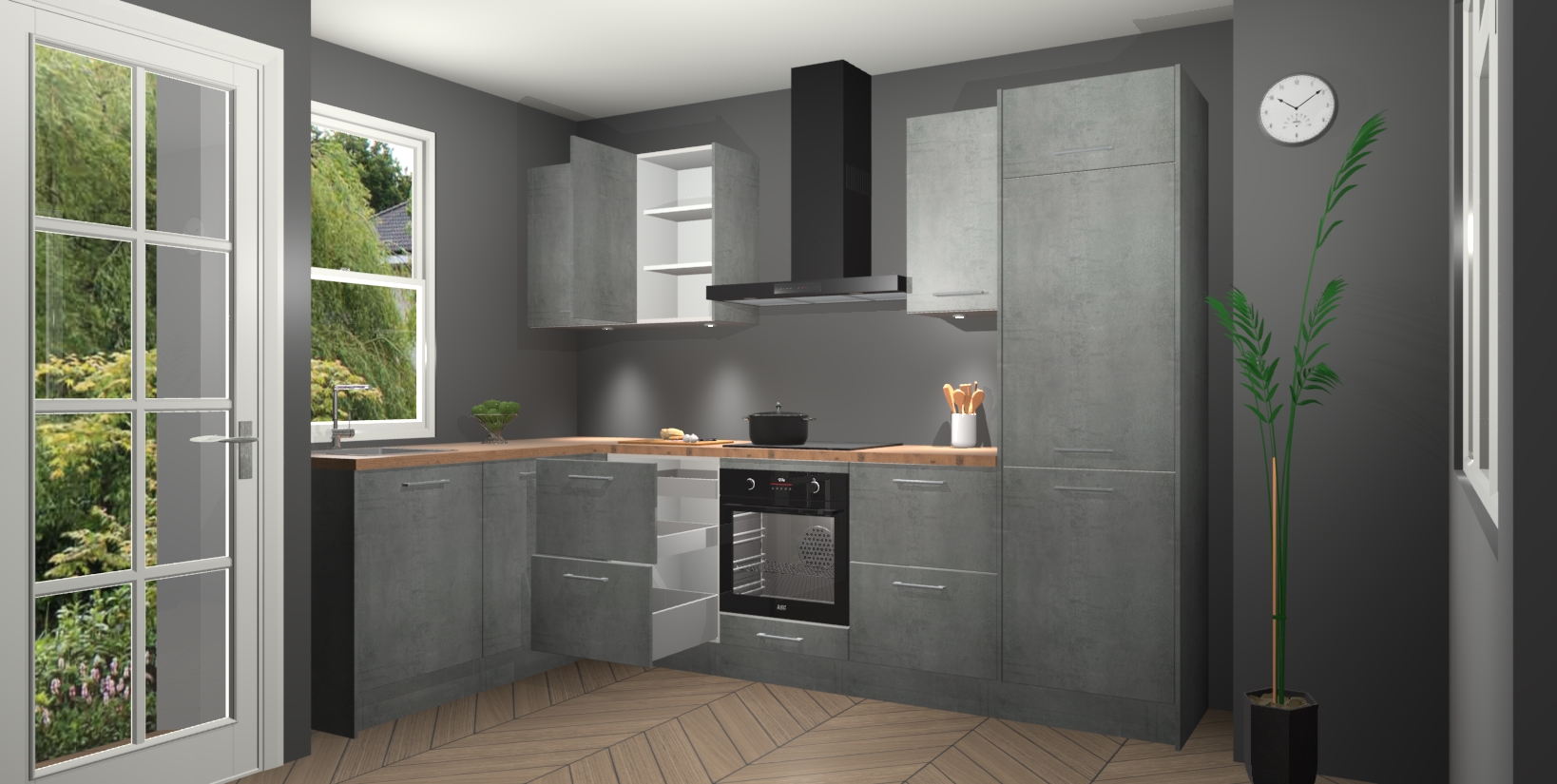 Bent u op zoek naar een strakke, moderne hoekkeuken die uw huis oppept en een moderne uitstraling geeft? Kijk dan niet verder dan de beton parelgrijs keuken Beijing. Deze verbluffende hoekkeuken tilt hedendaags design naar een hoger niveau. Qua stijl is deze chique hoekkeuken voorzien van beton parelgrijs accenten, om een strakke maar opvallende look te creëren. De binnenkant van de kasten is afgewerkt in dezelfde prachtige beton parelgrijs kleur voor extra esthetische aantrekkingskracht.