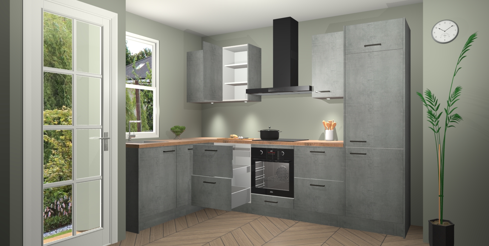 Bent u op zoek naar een strakke, moderne hoekkeuken die uw huis oppept en een moderne uitstraling geeft? Kijk dan niet verder dan de beton parelgrijs keuken Beijing. Deze verbluffende hoekkeuken tilt hedendaags design naar een hoger niveau. Qua stijl is deze chique hoekkeuken voorzien van beton parelgrijs accenten, om een strakke maar opvallende look te creëren. De binnenkant van de kasten is afgewerkt in dezelfde prachtige beton parelgrijs kleur voor extra esthetische aantrekkingskracht.