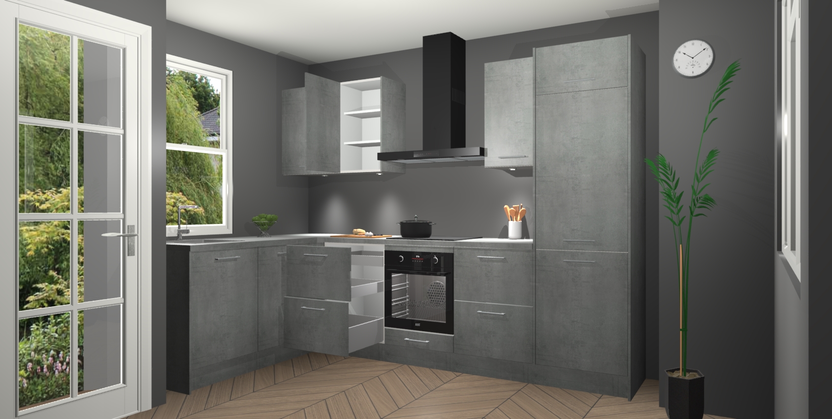Bent u op zoek naar een strakke, moderne hoekkeuken die uw huis oppept en een moderne uitstraling geeft? Kijk dan niet verder dan de beton parelgrijs keuken Beijing. Deze verbluffende hoekkeuken tilt hedendaags design naar een hoger niveau. Qua stijl is deze chique hoekkeuken voorzien van beton parelgrijs accenten, om een strakke maar opvallende look te creëren. De binnenkant van de kasten is afgewerkt in dezelfde prachtige beton parelgrijs kleur voor extra esthetische aantrekkingskracht.