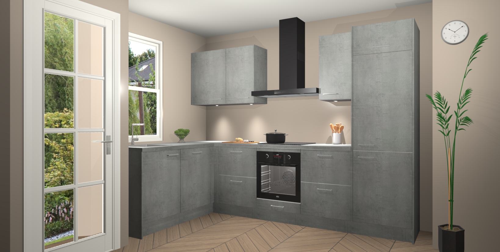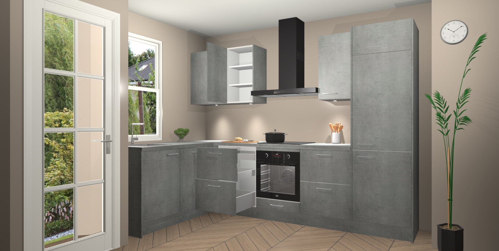 Bent u op zoek naar een strakke, moderne hoekkeuken die uw huis oppept en een moderne uitstraling geeft? Kijk dan niet verder dan de beton parelgrijs keuken Beijing. Deze verbluffende hoekkeuken tilt hedendaags design naar een hoger niveau. Qua stijl is deze chique hoekkeuken voorzien van beton parelgrijs accenten, om een strakke maar opvallende look te creëren. De binnenkant van de kasten is afgewerkt in dezelfde prachtige beton parelgrijs kleur voor extra esthetische aantrekkingskracht.