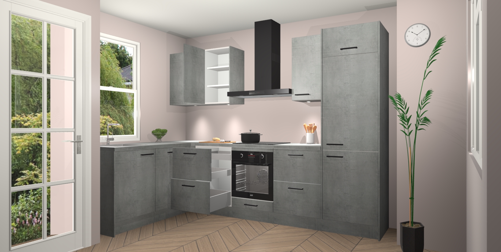 Bent u op zoek naar een strakke, moderne hoekkeuken die uw huis oppept en een moderne uitstraling geeft? Kijk dan niet verder dan de beton parelgrijs keuken Beijing. Deze verbluffende hoekkeuken tilt hedendaags design naar een hoger niveau. Qua stijl is deze chique hoekkeuken voorzien van beton parelgrijs accenten, om een strakke maar opvallende look te creëren. De binnenkant van de kasten is afgewerkt in dezelfde prachtige beton parelgrijs kleur voor extra esthetische aantrekkingskracht.