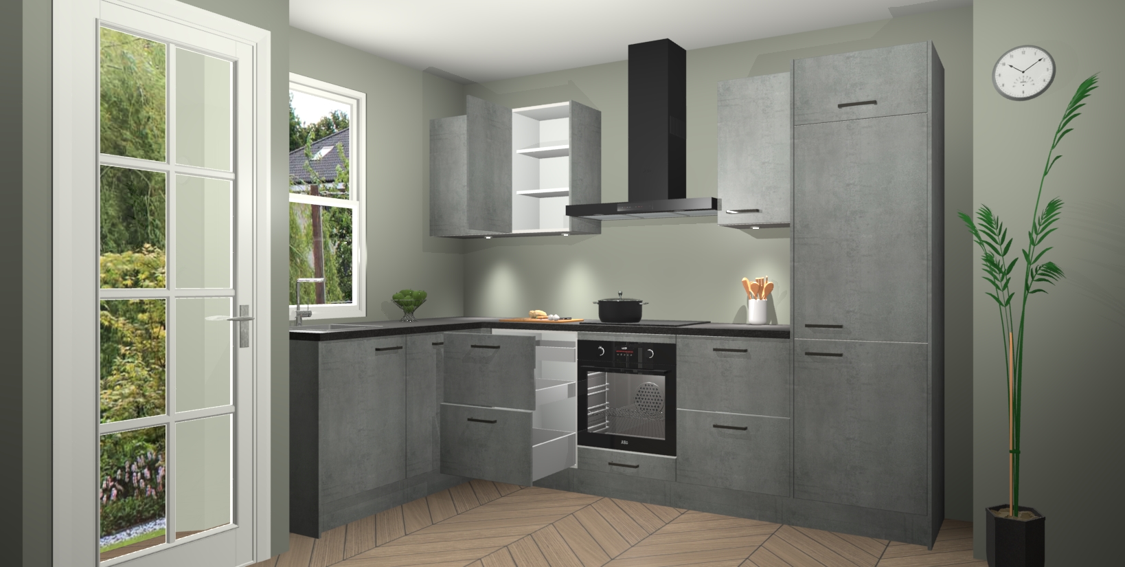 Bent u op zoek naar een strakke, moderne hoekkeuken die uw huis oppept en een moderne uitstraling geeft? Kijk dan niet verder dan de beton parelgrijs keuken Beijing. Deze verbluffende hoekkeuken tilt hedendaags design naar een hoger niveau. Qua stijl is deze chique hoekkeuken voorzien van beton parelgrijs accenten, om een strakke maar opvallende look te creëren. De binnenkant van de kasten is afgewerkt in dezelfde prachtige beton parelgrijs kleur voor extra esthetische aantrekkingskracht.