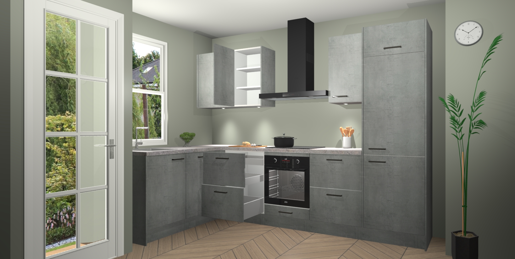 Bent u op zoek naar een strakke, moderne hoekkeuken die uw huis oppept en een moderne uitstraling geeft? Kijk dan niet verder dan de beton parelgrijs keuken Beijing. Deze verbluffende hoekkeuken tilt hedendaags design naar een hoger niveau. Qua stijl is deze chique hoekkeuken voorzien van beton parelgrijs accenten, om een strakke maar opvallende look te creëren. De binnenkant van de kasten is afgewerkt in dezelfde prachtige beton parelgrijs kleur voor extra esthetische aantrekkingskracht.