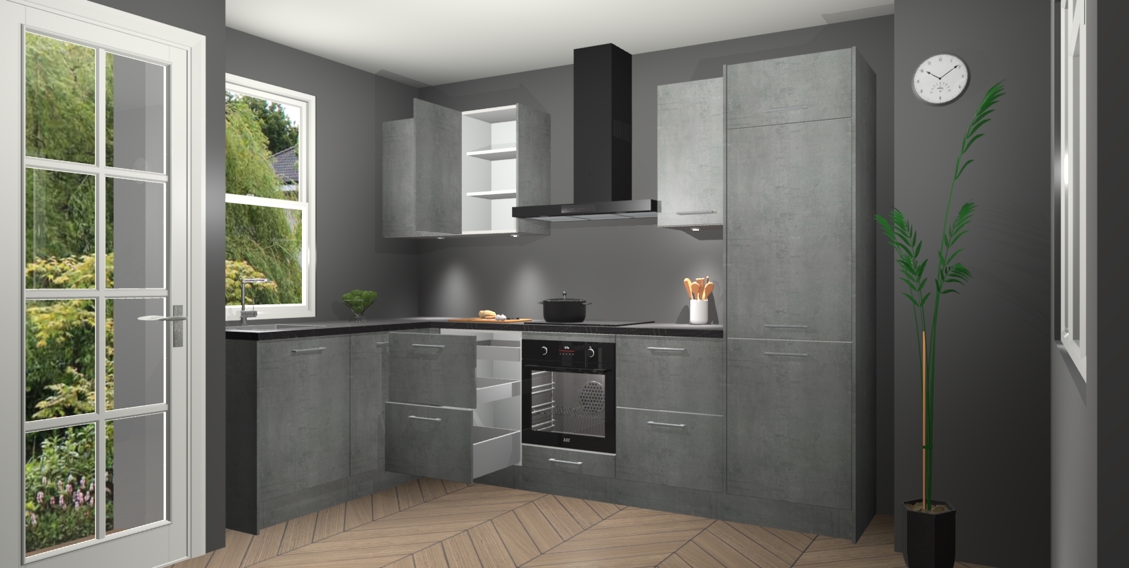 Bent u op zoek naar een strakke, moderne hoekkeuken die uw huis oppept en een moderne uitstraling geeft? Kijk dan niet verder dan de beton parelgrijs keuken Beijing. Deze verbluffende hoekkeuken tilt hedendaags design naar een hoger niveau. Qua stijl is deze chique hoekkeuken voorzien van beton parelgrijs accenten, om een strakke maar opvallende look te creëren. De binnenkant van de kasten is afgewerkt in dezelfde prachtige beton parelgrijs kleur voor extra esthetische aantrekkingskracht.