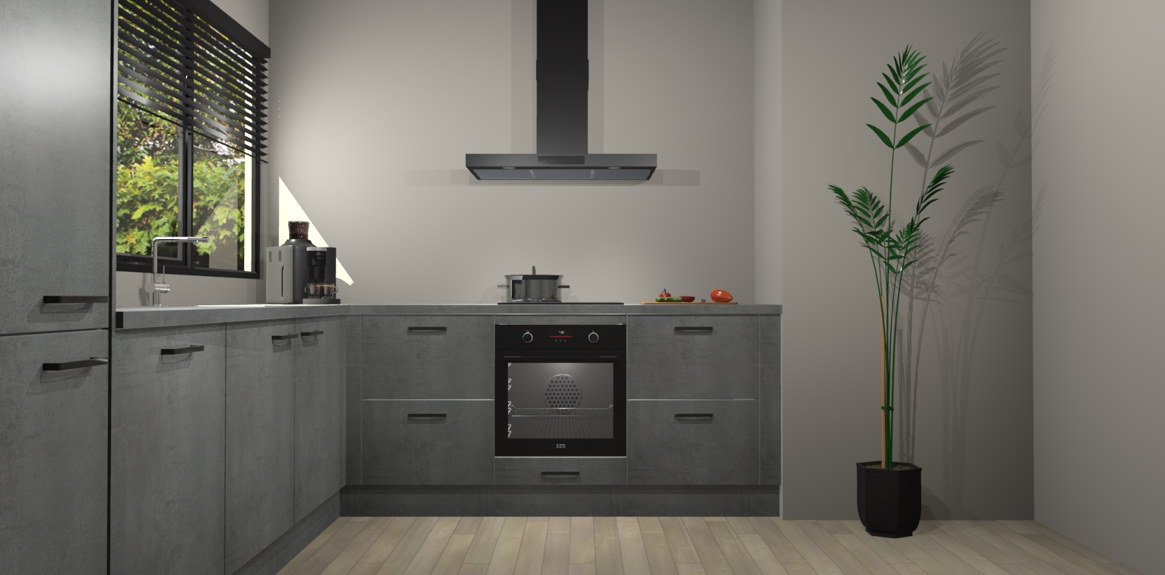 Met een modern, tijdloos design en ruime opslagruimte, zult u zich in no-time thuis voelen in uw nieuwe keuken. Uw leven wordt eenvoudiger met de soft-close deuren die voor het ultieme stille comfort zorgen - geen geluid dat u stoort terwijl u kookt. Ook is de keuken voorzien van 5 ingebouwde apparaten: een oven, inductie kookplaat, afzuigkap, vaatwasser en koelkast. Deze kunnen gemakkelijk na bestelling worden bijgewerkt naar AEG - waardoor uw luxe ervaring compleet is.