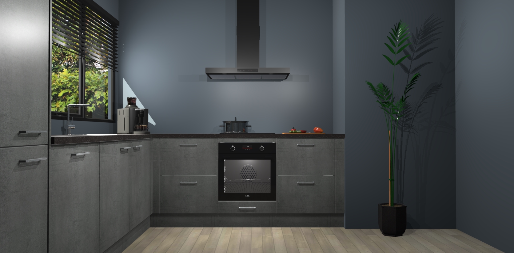 Met een modern, tijdloos design en ruime opslagruimte, zult u zich in no-time thuis voelen in uw nieuwe keuken. Uw leven wordt eenvoudiger met de soft-close deuren die voor het ultieme stille comfort zorgen - geen geluid dat u stoort terwijl u kookt. Ook is de keuken voorzien van 5 ingebouwde apparaten: een oven, inductie kookplaat, afzuigkap, vaatwasser en koelkast. Deze kunnen gemakkelijk na bestelling worden bijgewerkt naar AEG - waardoor uw luxe ervaring compleet is.