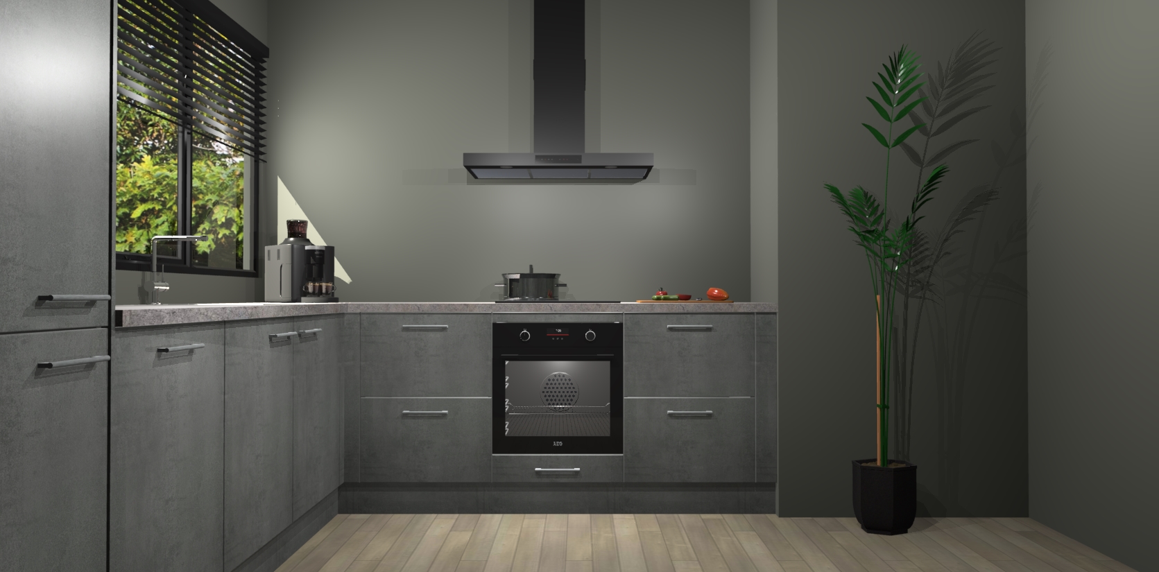 Met een modern, tijdloos design en ruime opslagruimte, zult u zich in no-time thuis voelen in uw nieuwe keuken. Uw leven wordt eenvoudiger met de soft-close deuren die voor het ultieme stille comfort zorgen - geen geluid dat u stoort terwijl u kookt. Ook is de keuken voorzien van 5 ingebouwde apparaten: een oven, inductie kookplaat, afzuigkap, vaatwasser en koelkast. Deze kunnen gemakkelijk na bestelling worden bijgewerkt naar AEG - waardoor uw luxe ervaring compleet is.