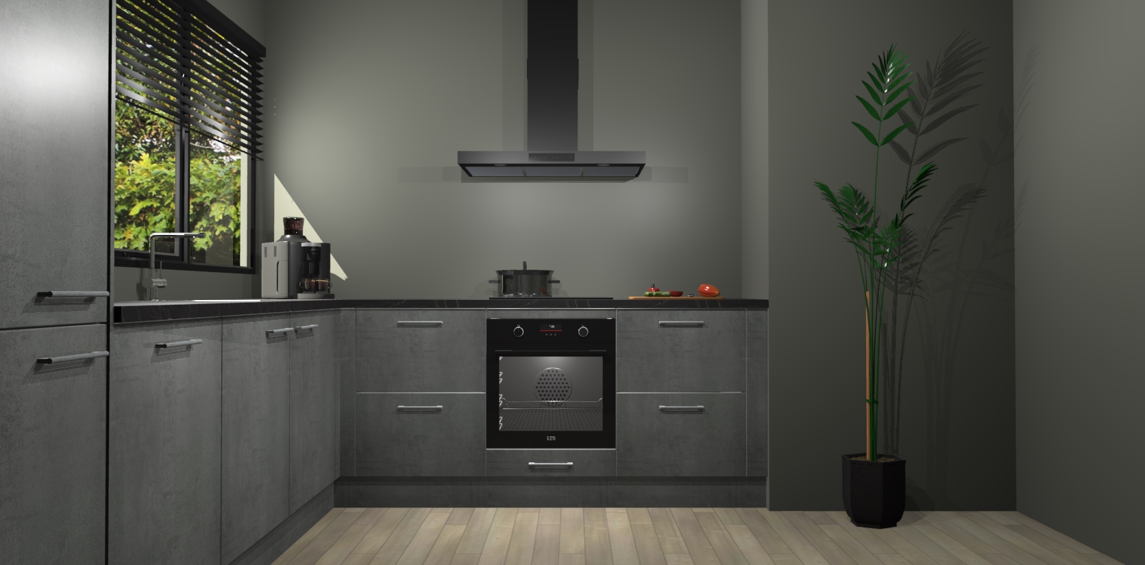 Met een modern, tijdloos design en ruime opslagruimte, zult u zich in no-time thuis voelen in uw nieuwe keuken. Uw leven wordt eenvoudiger met de soft-close deuren die voor het ultieme stille comfort zorgen - geen geluid dat u stoort terwijl u kookt. Ook is de keuken voorzien van 5 ingebouwde apparaten: een oven, inductie kookplaat, afzuigkap, vaatwasser en koelkast. Deze kunnen gemakkelijk na bestelling worden bijgewerkt naar AEG - waardoor uw luxe ervaring compleet is.