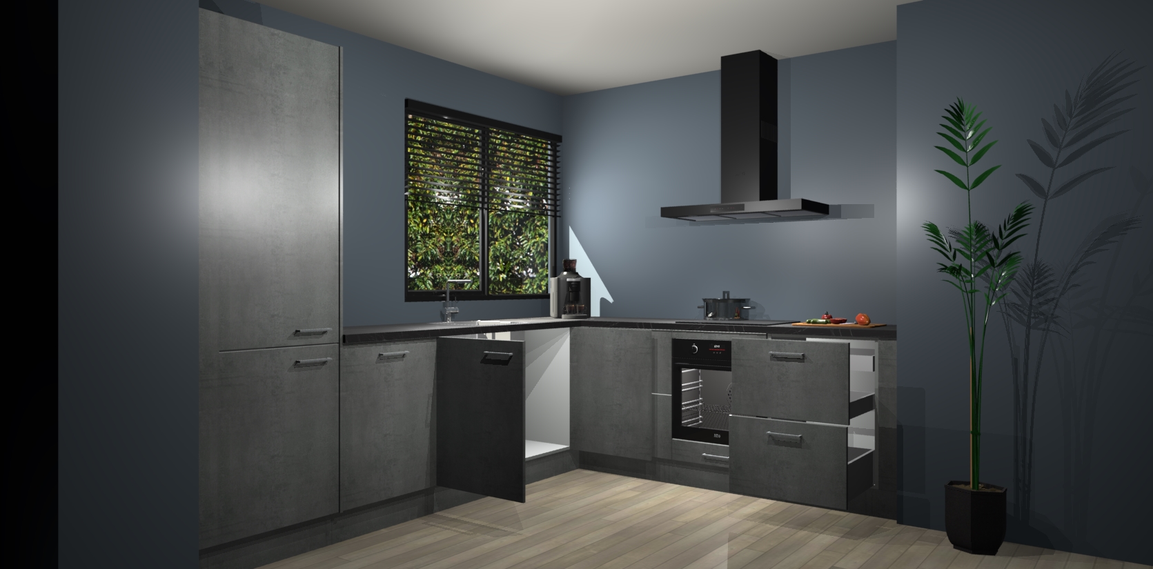 Met een modern, tijdloos design en ruime opslagruimte, zult u zich in no-time thuis voelen in uw nieuwe keuken. Uw leven wordt eenvoudiger met de soft-close deuren die voor het ultieme stille comfort zorgen - geen geluid dat u stoort terwijl u kookt. Ook is de keuken voorzien van 5 ingebouwde apparaten: een oven, inductie kookplaat, afzuigkap, vaatwasser en koelkast. Deze kunnen gemakkelijk na bestelling worden bijgewerkt naar AEG - waardoor uw luxe ervaring compleet is.