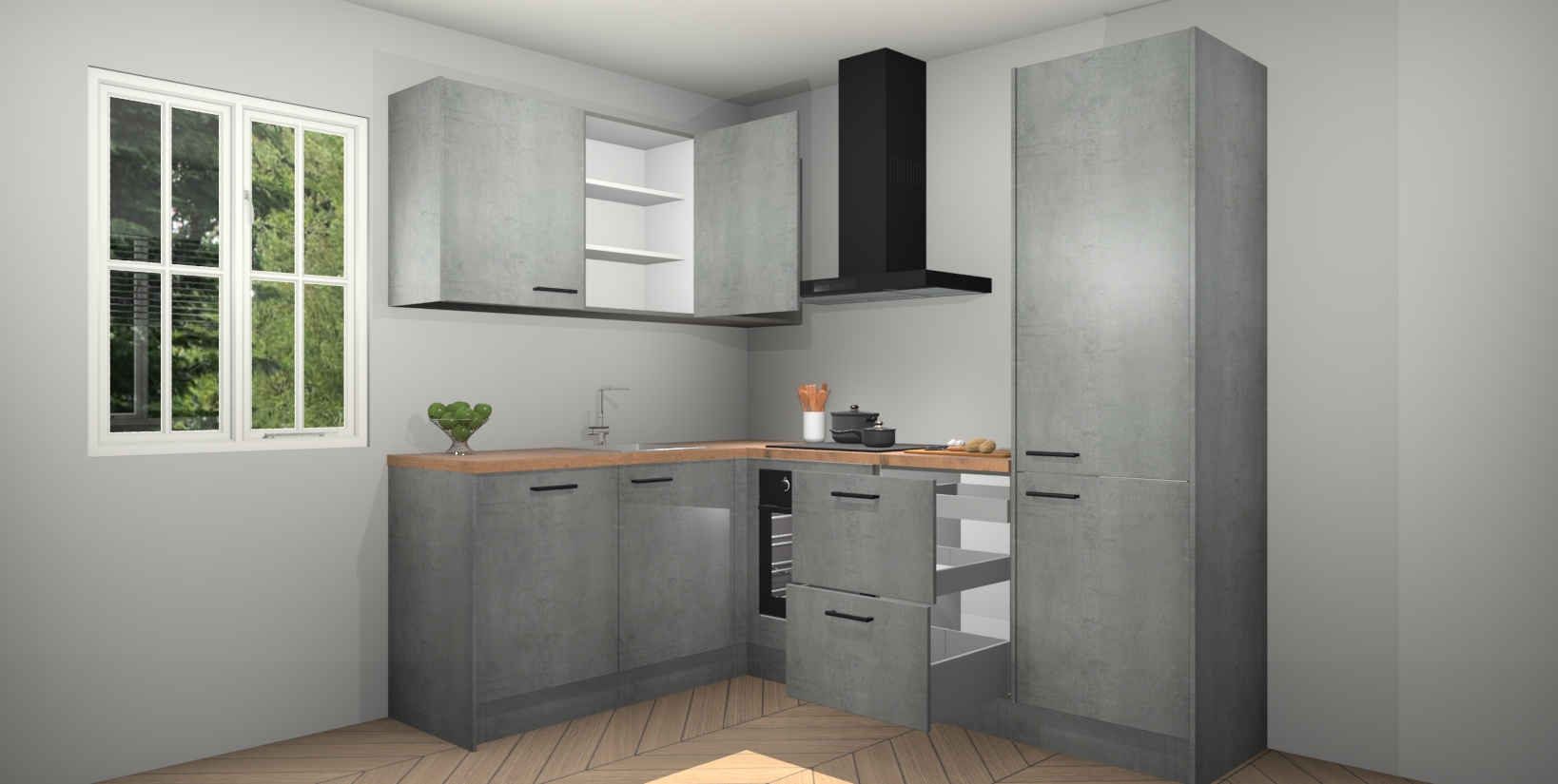 Maak kennis met de Beton Parelgrijs keuken Boekarest, een moderne hoekkeuken waar al uw vrienden en familie jaloers op zullen zijn! Het verbluffende mooie ontwerp past in elk interieur en is een ideale keuze voor wie op zoek is naar een klassieke, maar verfijnde look.