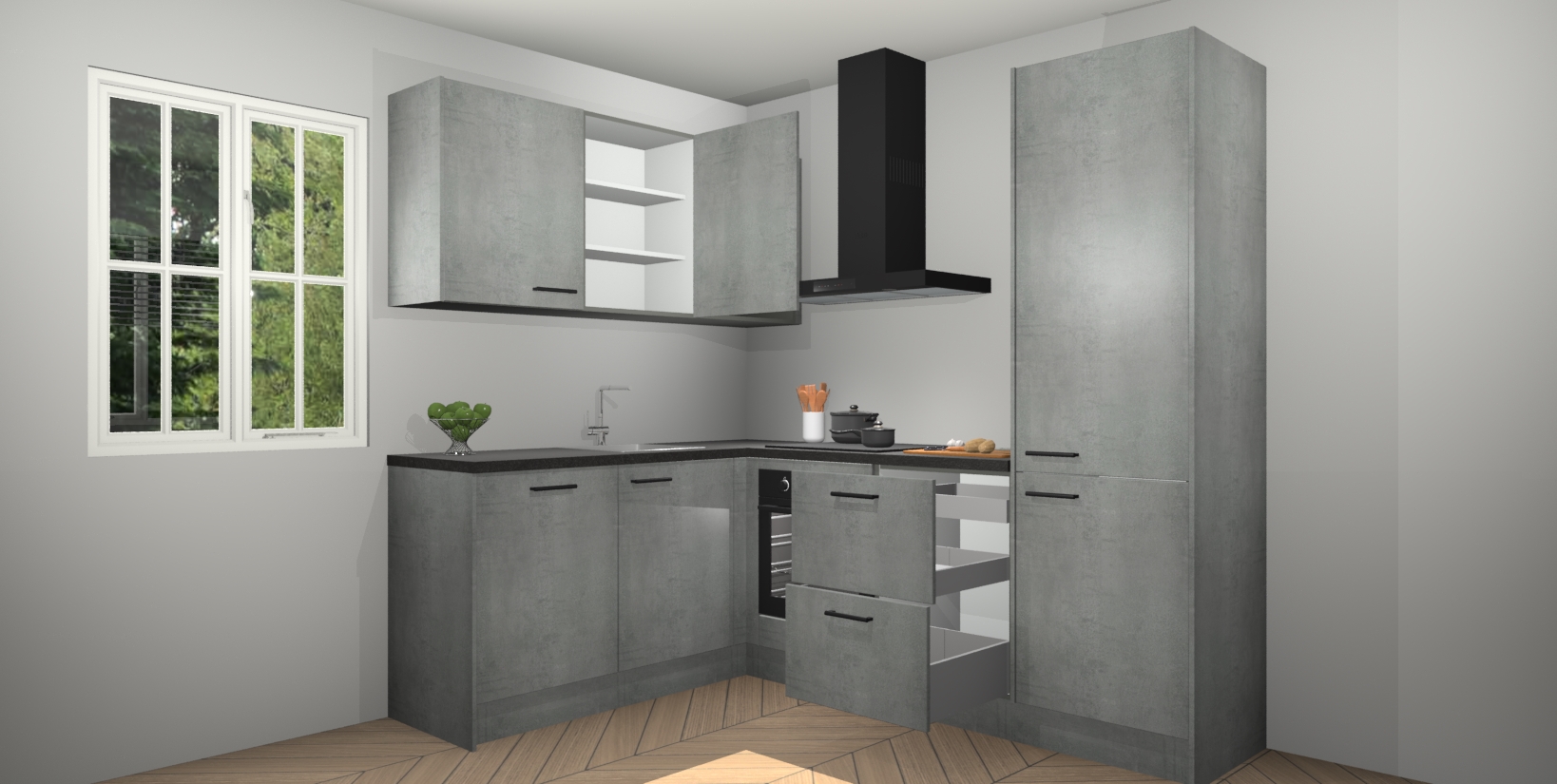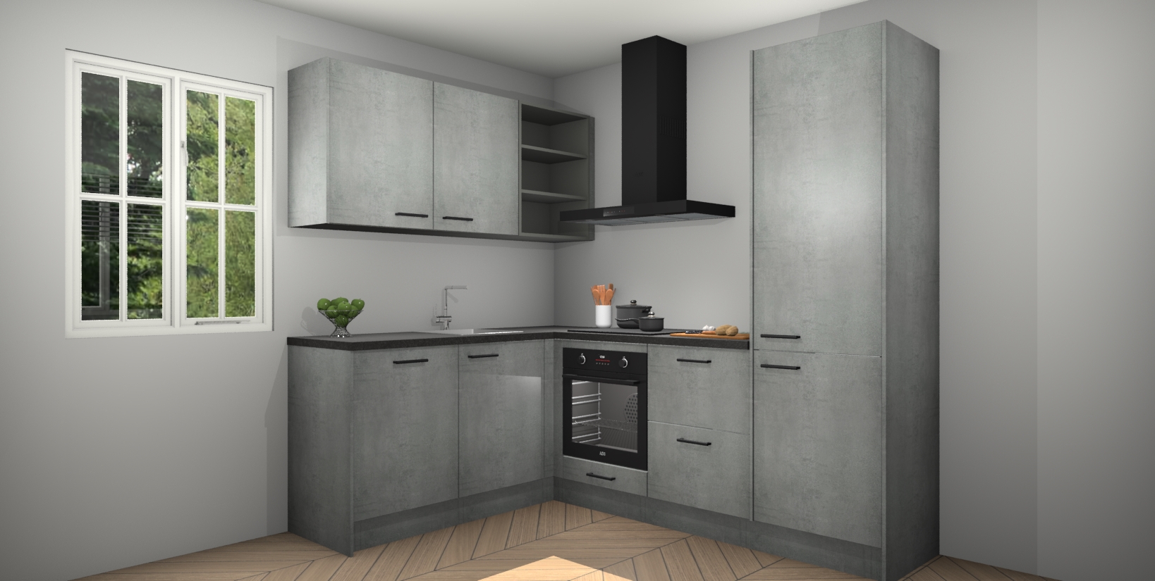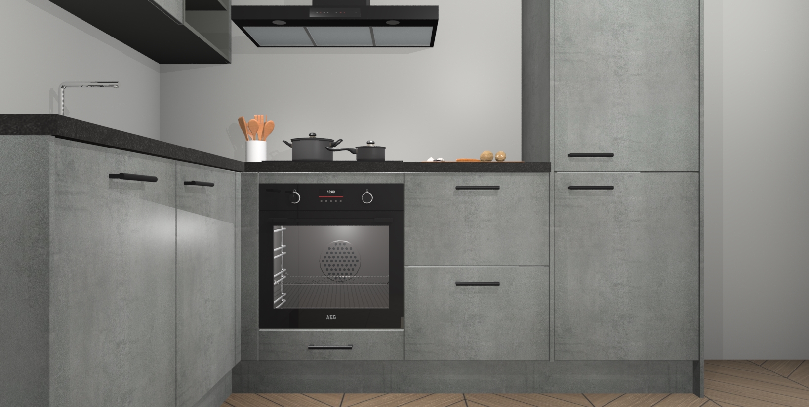 Maak kennis met de Beton Parelgrijs keuken Boekarest, een moderne hoekkeuken waar al uw vrienden en familie jaloers op zullen zijn! Het verbluffende mooie ontwerp past in elk interieur en is een ideale keuze voor wie op zoek is naar een klassieke, maar verfijnde look.