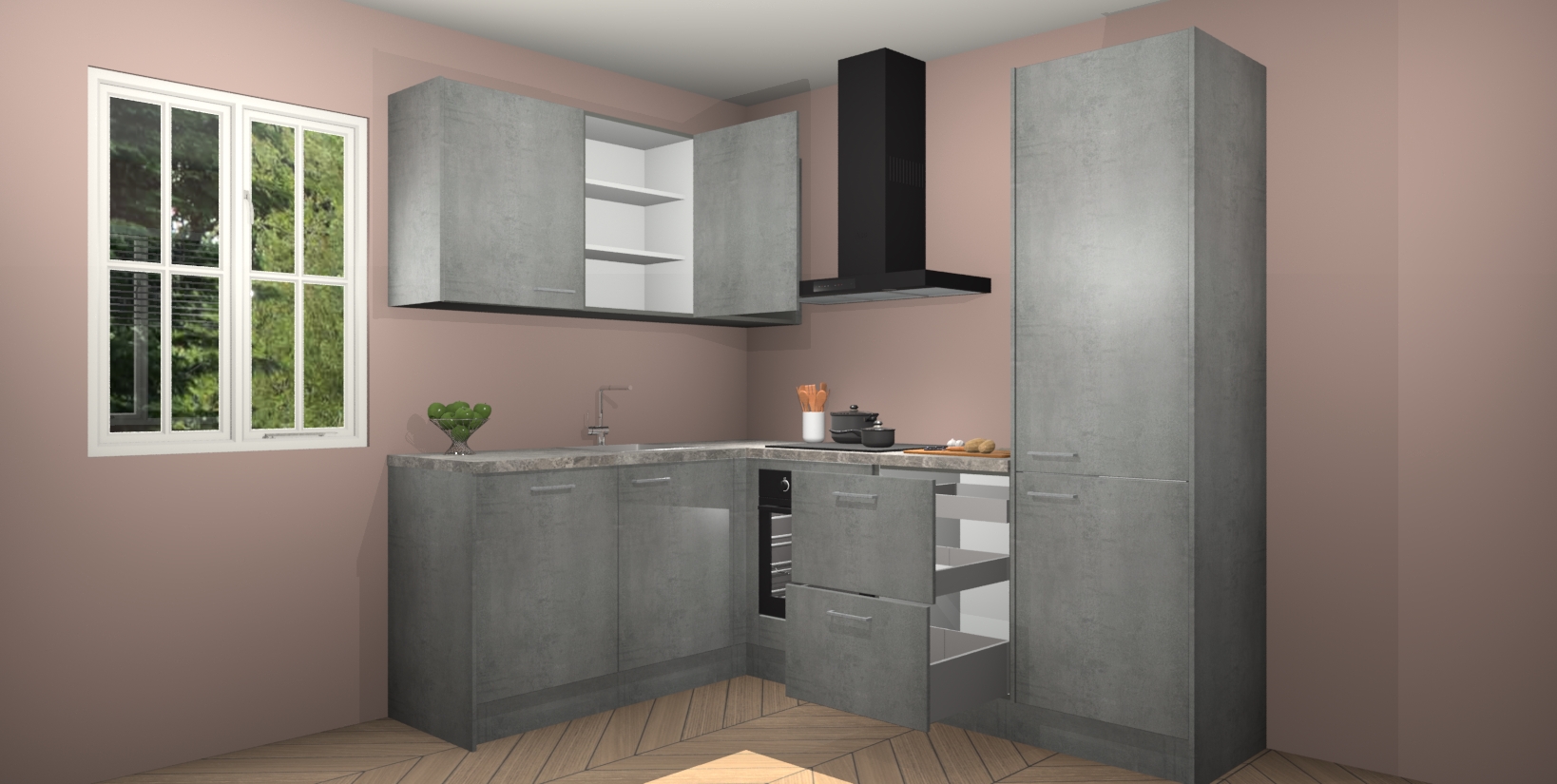 Maak kennis met de Beton Parelgrijs keuken Boekarest, een moderne hoekkeuken waar al uw vrienden en familie jaloers op zullen zijn! Het verbluffende mooie ontwerp past in elk interieur en is een ideale keuze voor wie op zoek is naar een klassieke, maar verfijnde look.