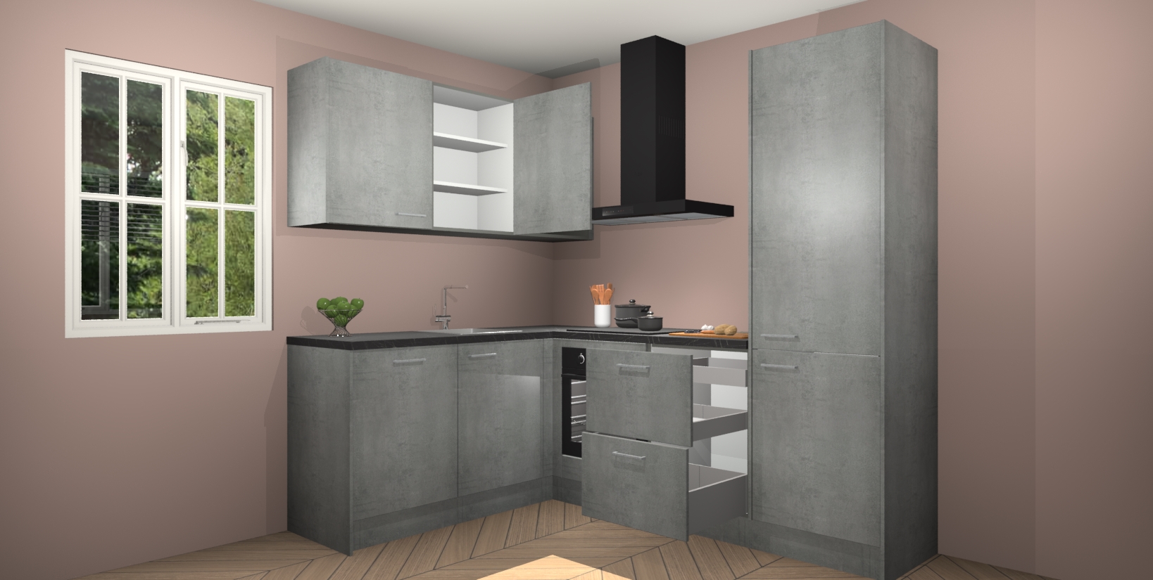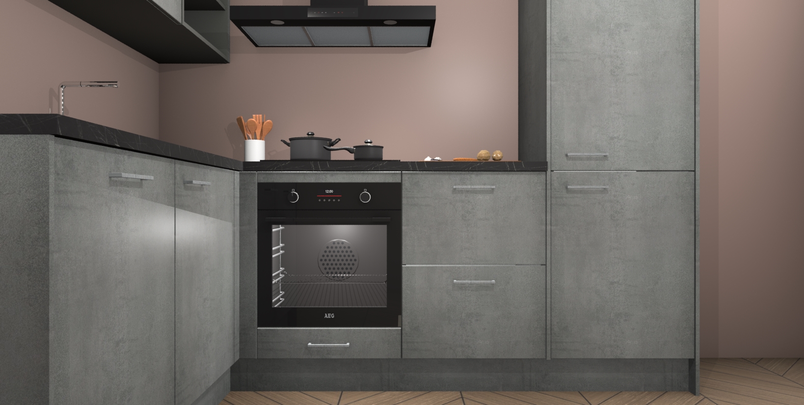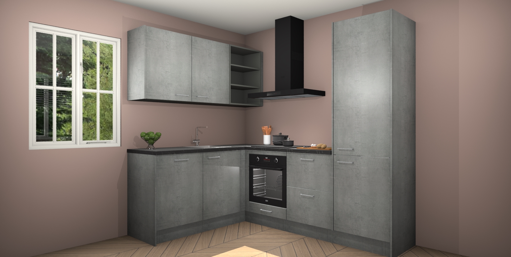 Maak kennis met de Beton Parelgrijs keuken Boekarest, een moderne hoekkeuken waar al uw vrienden en familie jaloers op zullen zijn! Het verbluffende mooie ontwerp past in elk interieur en is een ideale keuze voor wie op zoek is naar een klassieke, maar verfijnde look.