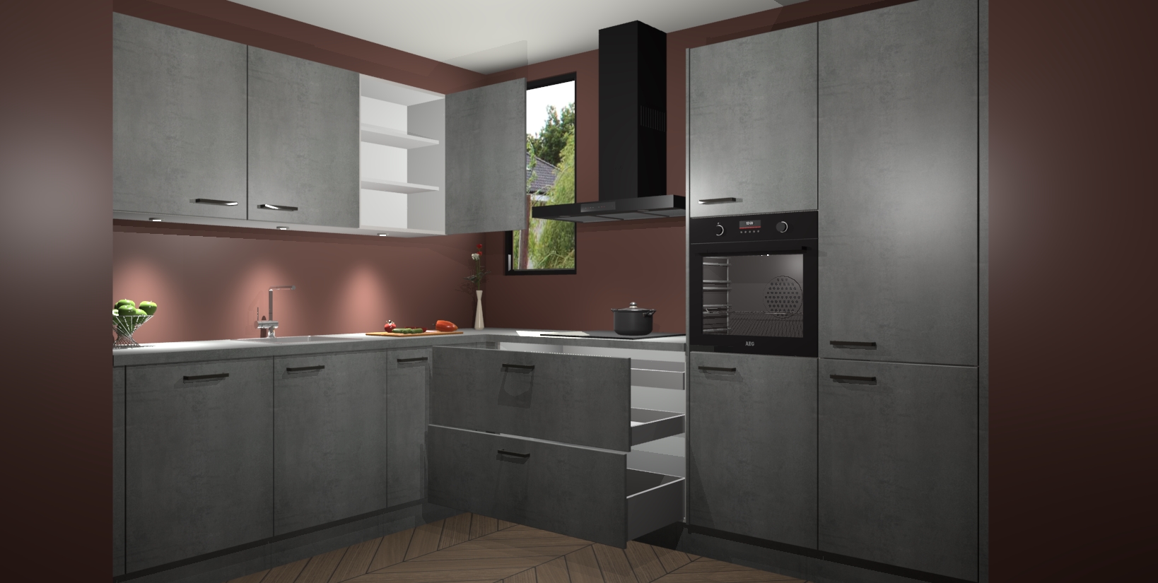 Inclusief plinten, stelpoten en werkblad