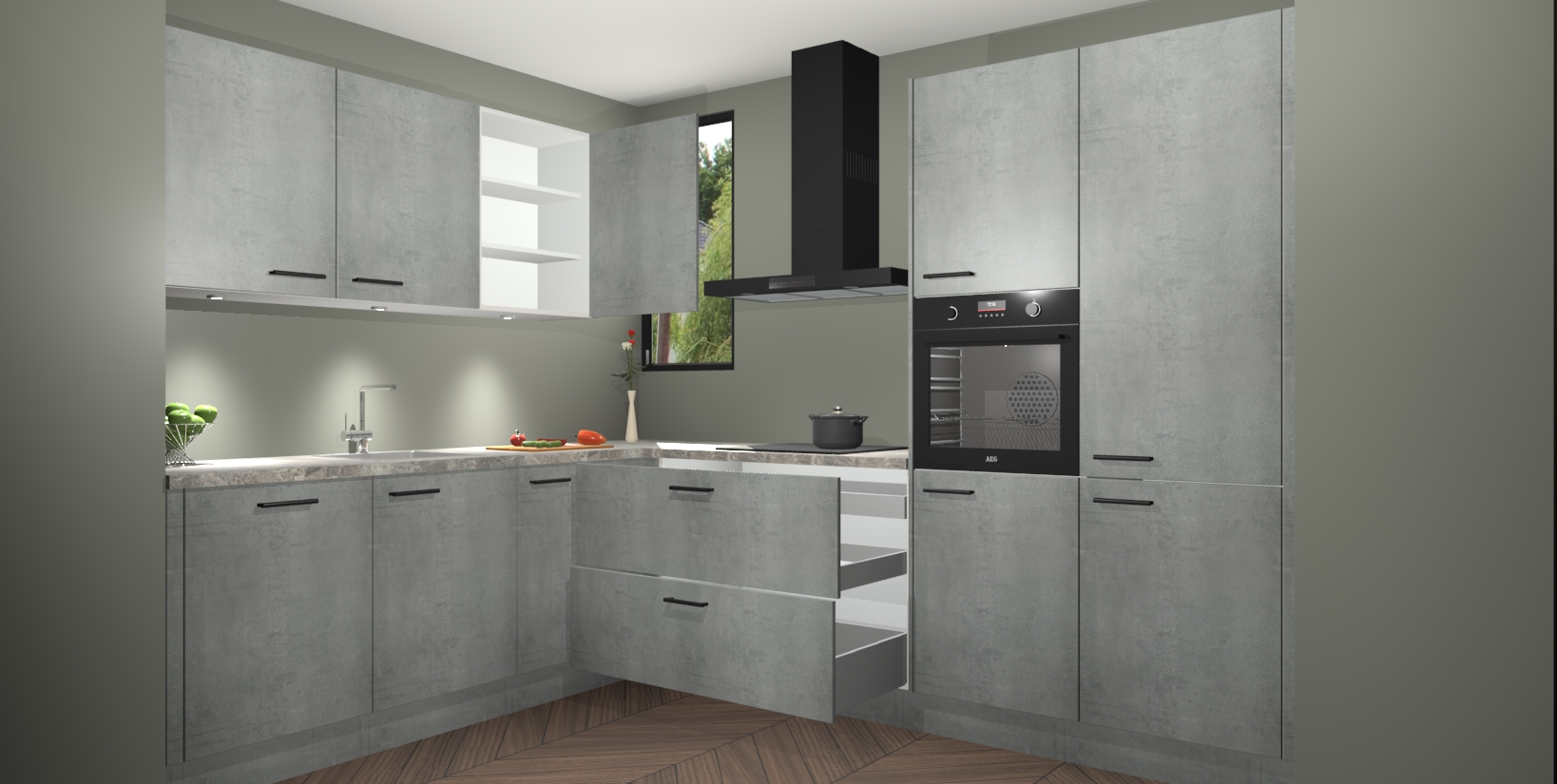 De ruime opbergruimte van dit model maakt het bereiden van voedsel en het gebruik van apparaten snel en gemakkelijk. Het beste van alles is dat het wordt geleverd met vijf inbouwapparaten: een oven, inductiekookplaat, afzuigkap, vaatwasser en koelkast - die allemaal gemakkelijk kunnen worden opgewaardeerd naar AEG na aankoop. Wat de gemaksfactor nog groter maakt, is het feit dat alle cabines voorgemonteerd worden geleverd, zodat u er meteen mee aan de slag kunt!