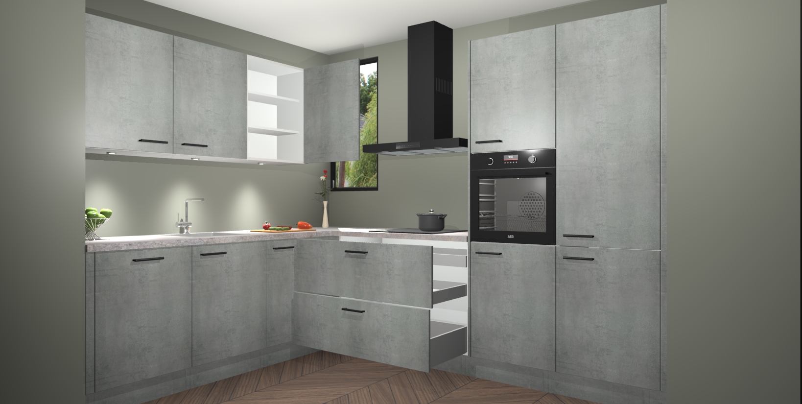 Maak u keuken elegant en verfijnd met de beton parelgrijs keuken Buenos Aires! Dit prachtige stuk heeft warme kleuren voor een strak, modern gevoel dat u de adem zal benemen. De handgrepen heeft net als de binnenkant van de kasten dezelfde beton parelgrijs afwerking, waardoor alles er nog beter uitziet.