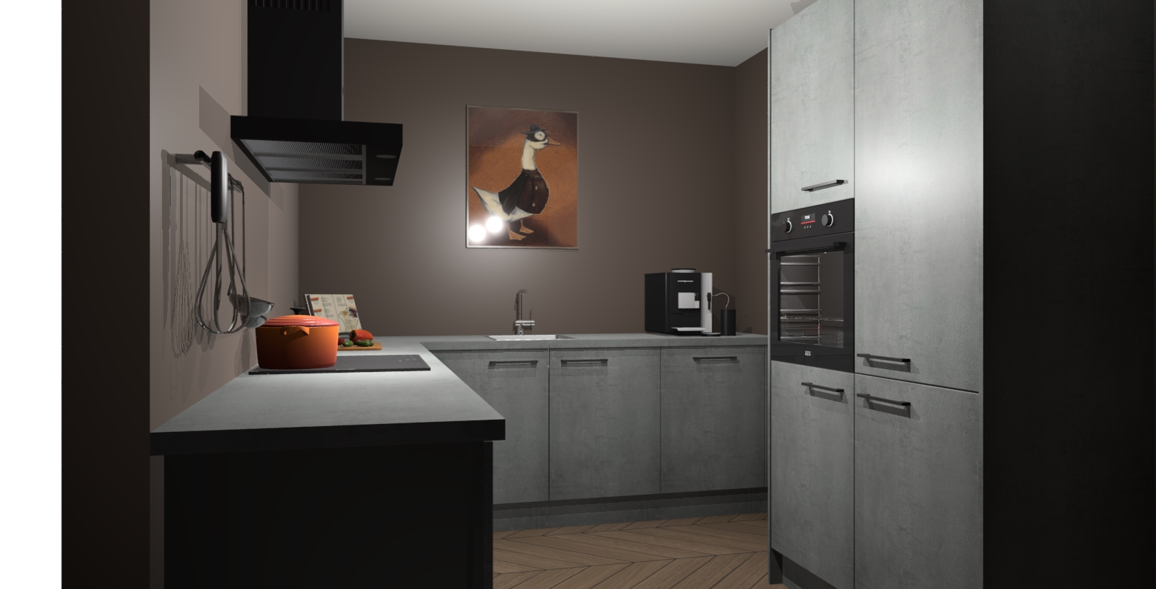 Met een modern, tijdloos design en ruime opslagruimte, zult u zich in no-time thuis voelen in uw nieuwe keuken. Uw leven wordt eenvoudiger met de soft-close deuren die voor het ultieme stille comfort zorgen - geen geluid dat u stoort terwijl u kookt. Ook is de keuken voorzien van 5 ingebouwde apparaten: een oven, inductie kookplaat, afzuigkap, vaatwasser en koelkast. Deze kunnen gemakkelijk na bestelling worden bijgewerkt naar AEG - waardoor uw luxe ervaring compleet is.