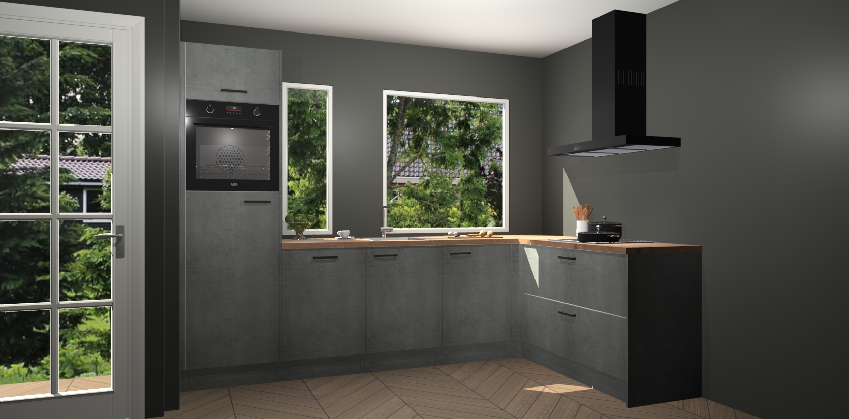 Deze complete keuken wordt geleverd met 5 inbouwapparaten: een oven, inductiekookplaat, afzuigkap, vaatwasser en koelkast.  De toestellen kunnen na bestelling ook gemakkelijk worden opgewaardeerd naar AEG. Bovendien is elke deur in deze keuken voorzien van handige softclose technologie voor eenvoudig gebruik! Als een leuke toevoeging zit in deze keuken ook een carrousel, zo hoef je niet meer de hoek in duiken om iets te pakken.