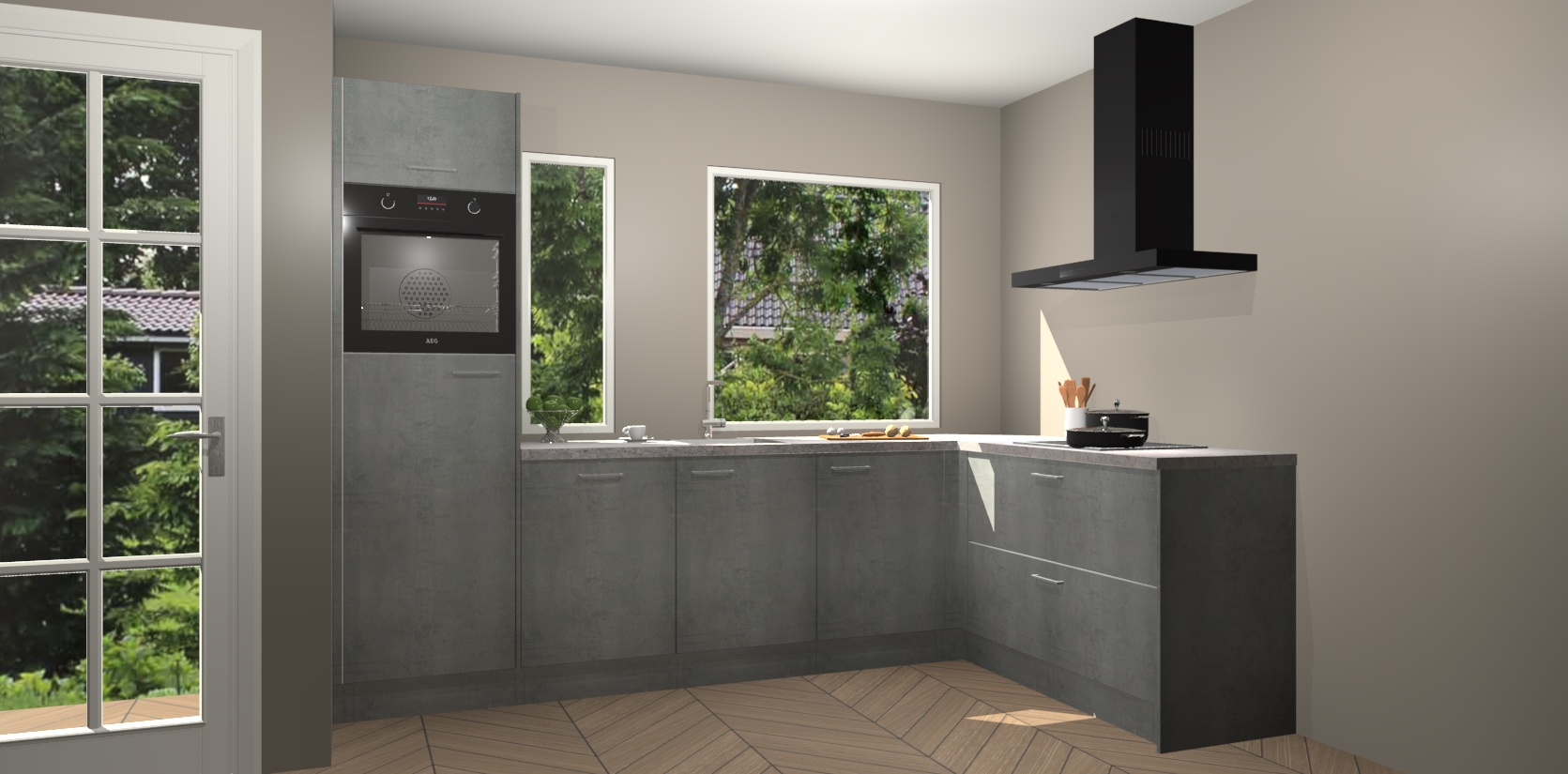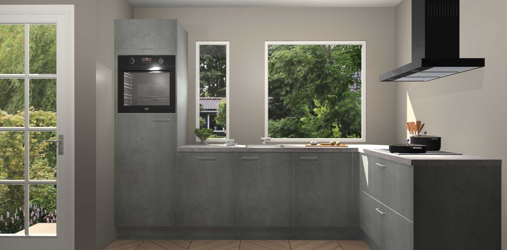 De beton parelgrijs keuken Cannes - de perfecte hoekkeuken voor elke ruimte! Onze combinatie van modern, tijdloos design en betrouwbare Duitse kwaliteit gecombineerd met een onverslaanbare prijs maken deze keuken een geweldige manier om uw huis te verbeteren en stijl toe te voegen.