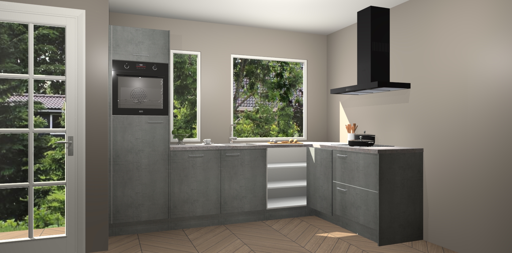 Deze complete keuken wordt geleverd met 5 inbouwapparaten: een oven, inductiekookplaat, afzuigkap, vaatwasser en koelkast. De toestellen kunnen na bestelling ook gemakkelijk worden opgewaardeerd naar AEG. Bovendien is elke deur in deze keuken voorzien van handige softclose technologie voor eenvoudig gebruik! Als een leuke toevoeging zit in deze keuken ook een carrousel, zo hoef je niet meer de hoek in duiken om iets te pakken.