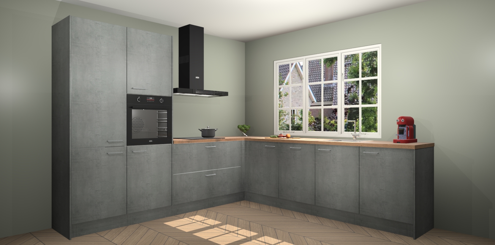 Welkom in de nieuwe wereld van een moderne keuken: de Beton Parelgrijs keuken Casablanca! Met dit innovatieve keukendesign haalt u de natuur naar binnen. Neem plaats aan uw hout-look keuken en voel u verbonden met de prachtige Beton Parelgrijs kleur. Zeer gebruiksvriendelijk, ervaring door prettige materialen en kleur die perfect aansluiten bij uw sfeerkeuze in huis.