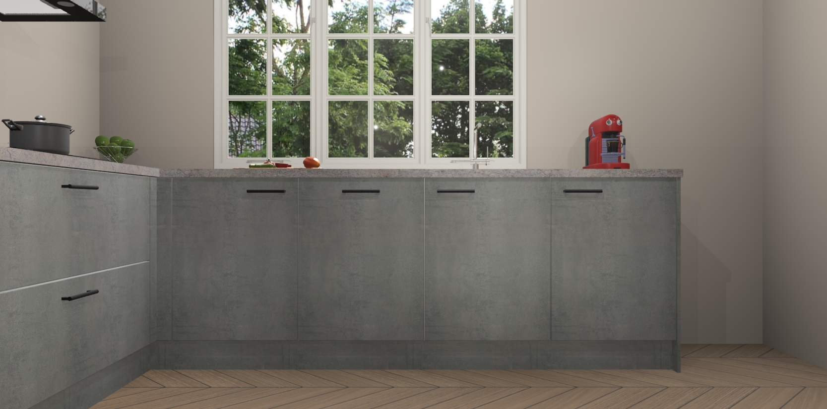 Welkom in de nieuwe wereld van een moderne keuken: de Beton Parelgrijs keuken Casablanca! Met dit innovatieve keukendesign haalt u de natuur naar binnen. Neem plaats aan uw hout-look keuken en voel u verbonden met de prachtige Beton Parelgrijs kleur. Zeer gebruiksvriendelijk, ervaring door prettige materialen en kleur die perfect aansluiten bij uw sfeerkeuze in huis.