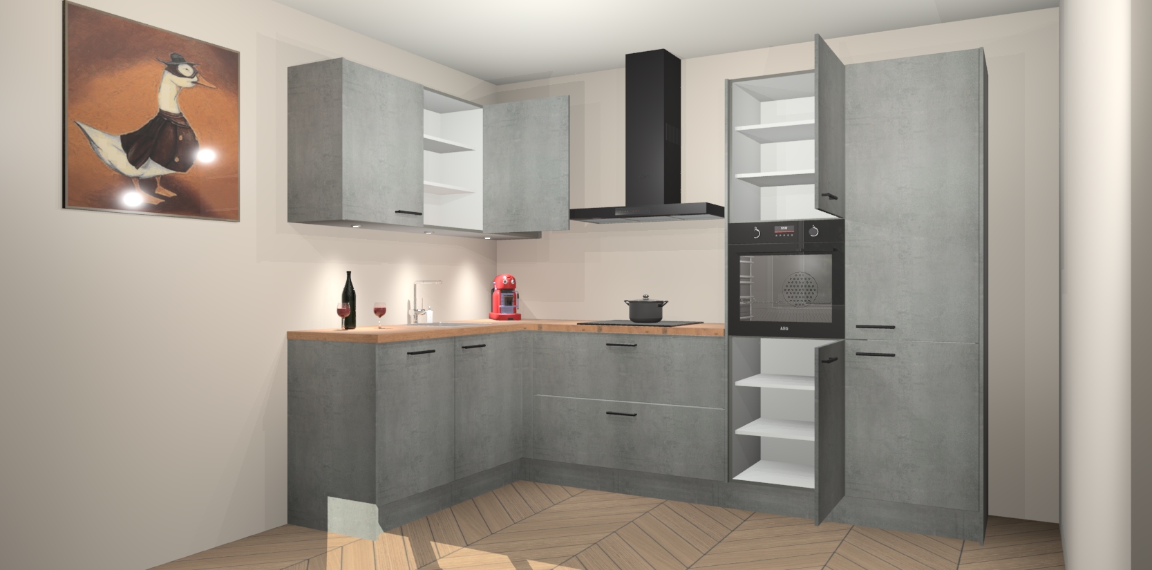 De Beton Parelgrijs keuken Cognac gaat alleen maar om de beste keukenervaring. Kies gewoon de beste apparatuur en ongeëvenaarde Duitse constructie die u thuis wilt hebben en verander uw huiskamer hartelijkheid meteen in professionaliteit. Laat de toon weten dat u gemakkelijk kan genieten van alle luxe die u verdiend? Bestel nu de Beton Parelgrijs keuken Cognac voor bij u thuis!