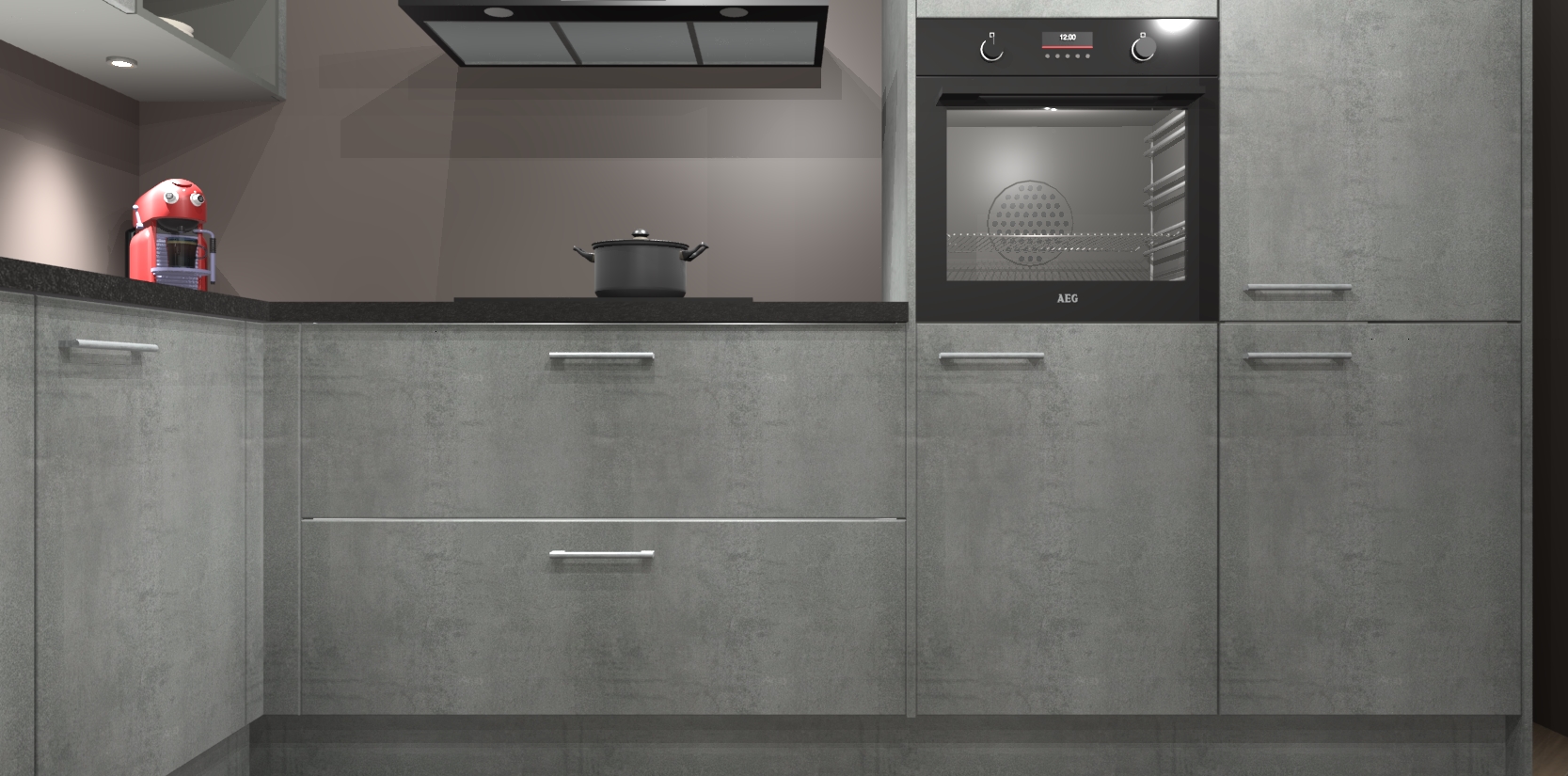 De Beton Parelgrijs keuken Cognac gaat alleen maar om de beste keukenervaring. Kies gewoon de beste apparatuur en ongeëvenaarde Duitse constructie die u thuis wilt hebben en verander uw huiskamer hartelijkheid meteen in professionaliteit. Laat de toon weten dat u gemakkelijk kan genieten van alle luxe die u verdiend? Bestel nu de Beton Parelgrijs keuken Cognac voor bij u thuis!
